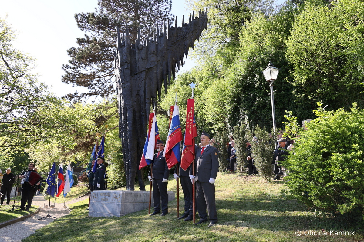 V petek, 24. aprila 2026, je v Parku Evropa potekala slovesnost ob državnem prazniku dneva upora proti okupatorju, s katero smo obeležili 85. obletnico ustanovitve Osvobodilne fronte. Poleg župana Mateja Slaparja so se dogodka udeležili občinske svetnice in svetniki, predstavniki veteranskih in domoljubnih organizacij Občine Kamnik skupaj z zastavonošami. Slavnostni govornik je bil Igor Kanižar, predsednik Pokrajinskega sveta ZZB NOB Osrednje Slovenije. Župan in slavnostni govornik sta ob tej priložnosti k spomeniku položila venec.