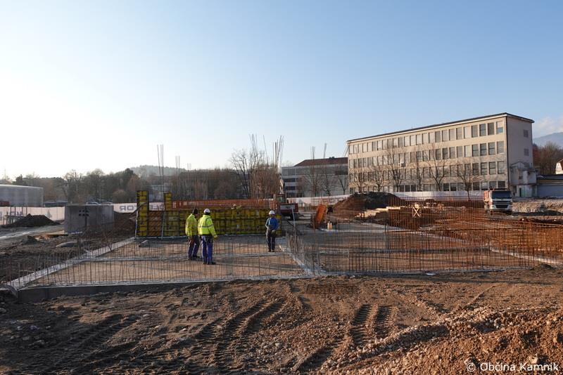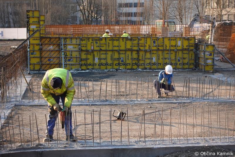 Izvajajo se tudi meritve zbitosti temeljnih tal z vpisi v gradbeni dnevnik. Do konca tedna bodo izvedene vse temeljne stene, začela se bo izvajati kanalizacija pod ploščo.