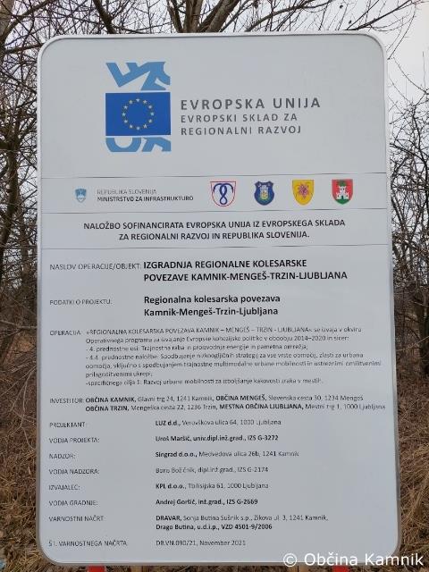 Projekt regionalne kolesarske povezave Kamnik – Mengeš – Trzin – Ljubljana vodi Evropska projektna pisarna Občine Kamnik, ki je v letu 2021 skupaj z Ljubljanskim urbanističnim zavodom d. d in SL Consult d. o. o. ter ob podpori vključenih občin oddala predlog projekta, za katerega je uspela pridobiti podporo za črpanje nepovratnih sredstev iz Evropske Unije (Evropskega sklada za regionalni razvoj) in državnega proračuna.