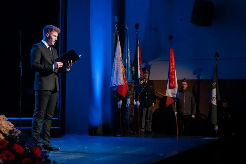 Župan Matej Slapar pa je ob tej priložnosti dejal: »Spoštovani gostje, podpredsednik vlade in minister za obrambo Republike Slovenije magister Matej Tonin, spoštovana podžupana, občinske svetnice in svetniki, spoštovani člani nadzornega odbora Občine Kamnik, spoštovani člani in predsednik Društva Demos na Kamniškem, spoštovani predstavniki veteranskih in domoljubnih organizacij Občine Kamnik, spoštovani člani društev, organizacij ter vsi ostali prisotni, zaslužni za nesebično pomoč v času epidemije, drage Kamničanke in Kamničani. Ponosen sem, da bomo nocojšnji program prireditve ob Dnevu Samostojnosti in Enotnosti izvedli prav na odru Doma kulture Kamnik, ki je v letu, ki se izteka doživel temeljito prenovo. Počaščen sem, da lahko danes v svojem imenu in imenu Občine Kamnik spregovorim nekaj besed ob poklonu samostojni Sloveniji in zgodovinsko prelomih datumih za Republiko Slovenijo. Dobra tri desetletja je odkar smo na glasovanju o Samostojnosti Slovenije, jasno izrazili svojo željo po demokratični republiki. Izid plebiscita je bil jasen. Želeli smo samostojno in neodvisno državo. Obeležujemo poklon sodelovanju pri oblikovanju skupnih ciljev. Pred 31. leti smo bili odločni in enotni, kot nikoli. Obkrožili smo ZA. ZA spremembe. ZA lastno državo. ZA več pravic.Samostojnost in enotnost. Vrednosti s težo. Kljub nekaterim razhajanjem, smo se odločili, da dosežemo sporazum, ki nam je omogočil ustanovitev lastne države. Uspelo nam je, ker smo se povezali in stopili skupaj. Slovenski narod je bil složen kot nikoli prej. Kljub razlikam je pripravljenost na sodelovanje pokazala vsa slovenska politika. Naj omenim pomembno vlogo Demosove koalicijske vlade, ki je imela voditeljsko vlogo pri osamosvojitvi. Prevzem pobud strank združenih v koaliciji Demos nam je prinesel uveljavitev nove države. Veseli me, da zato lahko današnjo proslavo soustvarjamo skupaj z Društvo Demos na Kamniškem, katerega člani - demokrati ste v tistem prelomnem času izvedli demokratične spremembe, tako na ravni države, kot tudi na ravni občine Kamnik, za kar sem vam iskreno hvaležen. Želim si, da bi takšno vsestransko povezanost strank, institucij in celotne javnosti lahko pokazali tudi danes. Želim si več dialoga in odprtosti. Želim si več sodelovanja in solidarnosti. Želim si povezane družbe, tako na lokalni, kot na državni ravni. Naj nas ne vodi nestrpnost ali celo sovražni govor. Sedaj je čas, ko si zavračanja sodelovanja ne smemo privoščiti. Bodimo torej enotni v bistvenih poudarkih državnosti in naj nas različnost, preko konstruktivnih pogovorov bogati in pelje v iskanje kompromisov ter k premiku na bolje. Dokažimo, da smo ponosni. Ponosni na svoje ozemlje, jezik in kulturo. Pokažimo svoje domoljubje. Slovenija je majhna zelena destinacija, ki se ponaša z naprednimi tehnologijami in znanostjo ter z bogatim kulturnim udejstvovanjem. Vendar v svetovnem merilu nismo majhni. Smo država vrhunskih športnikov, znanstvenikov, podjetnikov in kulturnikov, kateri ime Slovenije in tudi Kamnika ponašajo širom naših meja. Na vse omenjene dosežke smo lahko upravičeno ponosni. Tudi Občina Kamnik je v vseh teh letih prehodila strmo pot navzgor na mnogih področjih. Ponosen sem, na vse kar smo v tem obdobju skupaj uspeli narediti. Prepričan sem, da bomo v naši lokalni skupnosti tudi v prihodnje razvijali in ohranjali kakovostno življenje, kjer bodo skrb za naravne danosti, spodbujanje poslovnega okolja in razvoja turizma ter infrastrukture, omogočali razvoj za vse prihodnje generacije. Veliko pričakovanj je izpolnjenih. Pred nami pa je še veliko izzivov. Leto od katerega se poslavljamo nas opominja, da je ključna vrednota, ki omogoča dosežke in napredek, prav sodelovanje. Ravno ta čas, močno zaznamovan z nevarnostmi širjenja virusa, nam daje priložnost, da se zavemo kakšno moč nam dajeta sloga in enotnost. Spoštovani vsi navzoči, dovolite, da vam zaželim lep preostanek praznikov. Prihajajoče leto naj vam prinese trenutke, ki vas navdihujejo z upanjem. Naj v vas prevladujejo optimizem, pogum in veselje do življenja. Iskrene čestitke ob državnem prazniku, dnevu samostojnost in enotnosti.