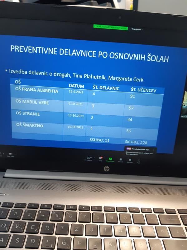 Aktivnosti skozi leto so se izvajale na Osnovni šoli Frana Albrehta Kamnik, Toma Brejca, Marije Vere, Stranje in Šmartno v Tuhinju. Izvedenih je bilo tudi 11 delavnic na 4 osnovnih šolah, ki so zajemale učence 8. razredov (skupaj 228 otrok). Prav tako so potekala predavanja za starše in strokovne delavce na šolah ter mladinski natečaj Svoj?Nesvoj?Zasvojen?