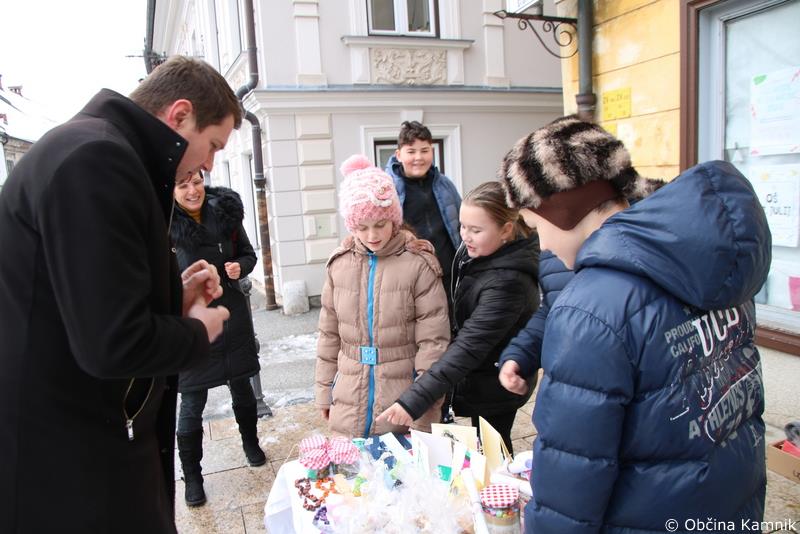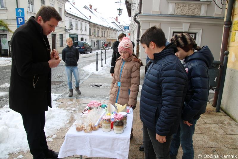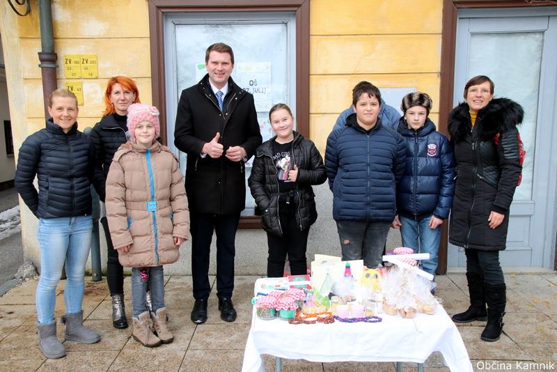 Župan Matej Slapar je danes, v petek, 10. decembra 2021, skupaj z ravnateljico Osnovne šole 27. julij Kamnik Jasno Lampe na Šutni obiskal otroke Osnovne šole 27. julij Kamnik, kjer se je odvijala njihova praznična tržnica.