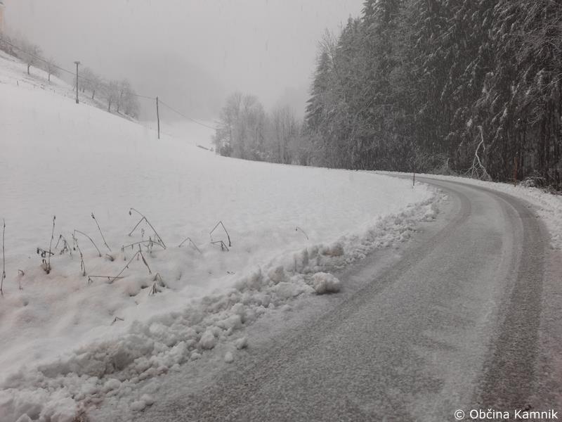 Velik del občine Kamnik je ponoči pobelil sneg, koncesionar pa je bil na terenu in zagotavljal nemoteno prevoznost občinskih cest.