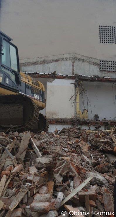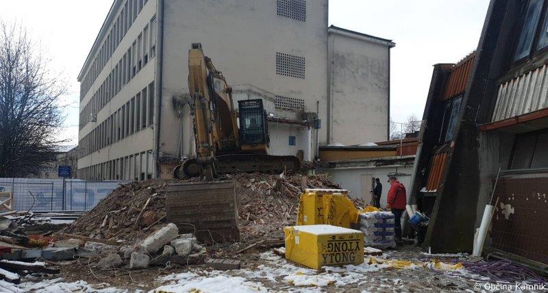 V preteklem tednu je izvajalec začel z zunanjo rušitvijo povezovalnega hodnika med osnovno šolo in športno dvorano.