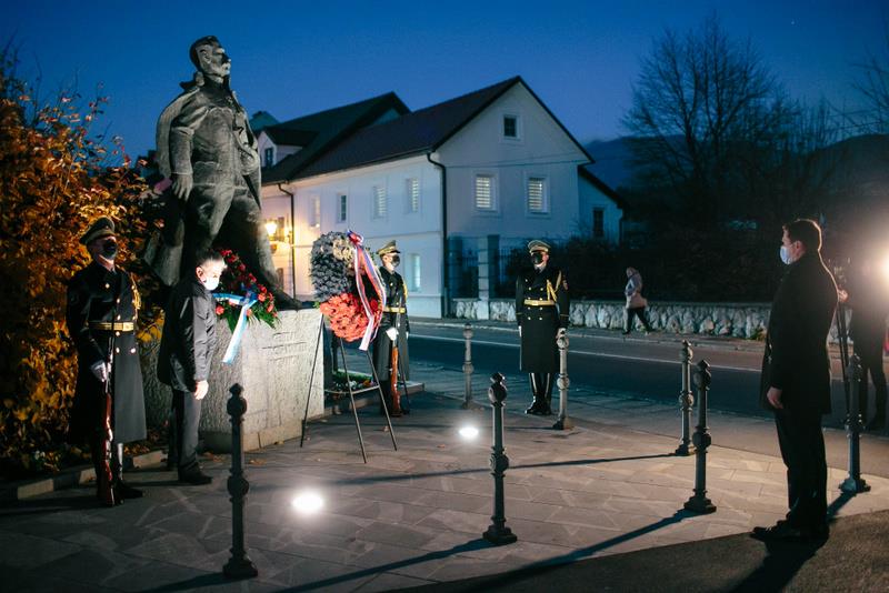 polaganje cvetja k spomeniku generala Rudolfa Maistra – Vojanova in spominskem obeležju njegovih borcev s kamniškega. Cvetje je k spomeniku položil