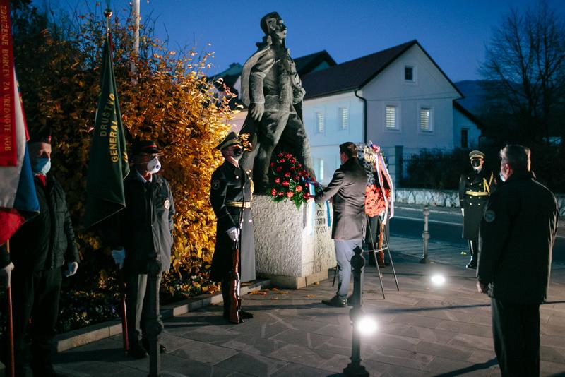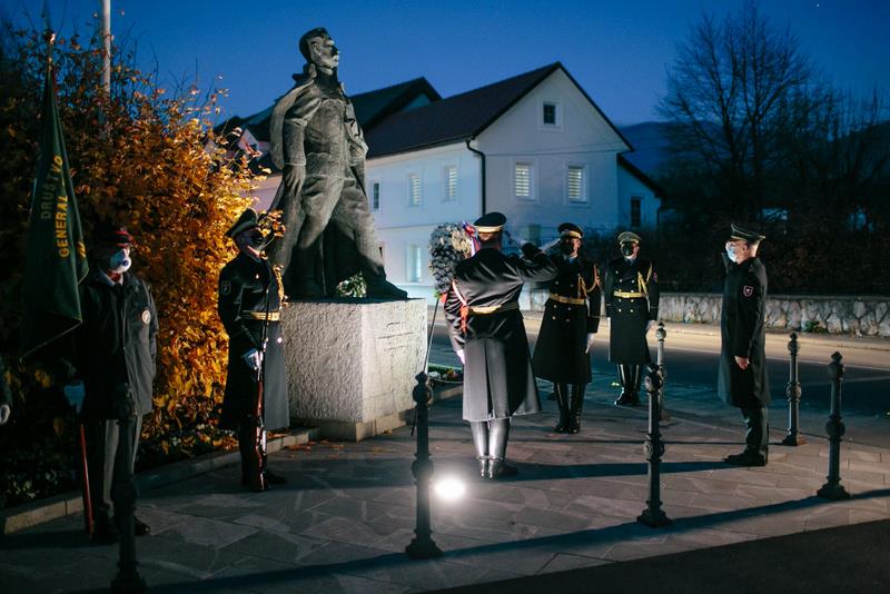 Tudi letošnje leto smo 23. november, državni praznik, dan Rudolfa Maistra obeležili na drugačen način kot običajno, a vendarle nič manj s ponosom in spoštovanjem do dejanj generala Maistra in njegovih borcev. Glede na trenutno epidemiološko situacijo in navodila ter priporočila pristojnih institucij žal nismo mogli izpeljati osrednje slovesnosti na način, da bi si jo ogledala širša javnost, a smo v sodelovanju z Zavodom za kulturo Kamnik in s pomočjo video prenosa zaznamovali ta pomembni dan za Kamničanke in Kamničane, za Slovenke in Slovence. Na Trgu talcev smo pri Maistrovem spomeniku in spominskem obeležju njegovih borcev sprva položili cvetje, nato pa v samostanu Mekinje podelili spominska priznanja za zasluge pri ohranjanju spomina, sporočilnosti in veličine generala Maistra. Tam sta zbrane pozdravila gostitelj slovesnosti, župan Matej Slapar, in slavnostni govornik, načelnik Generalštaba Slovenske vojske generalmajor Robert Glavaš.
