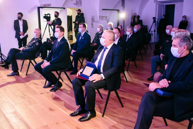 podžupana Bogdan Pogačar in Aleksander Uršič, podžupanja Mestne občine Maribor Alenka Iskra, občinske svetnice in svetniki, predsednica Zveze društev General Maister mag. Lučka Lazarev Šerbec skupaj s predsedniki in predstavniki domoljubnih in veteranskih organizacij Občine Kamnik ter današnji dobitniki Maistrovih priznanj.