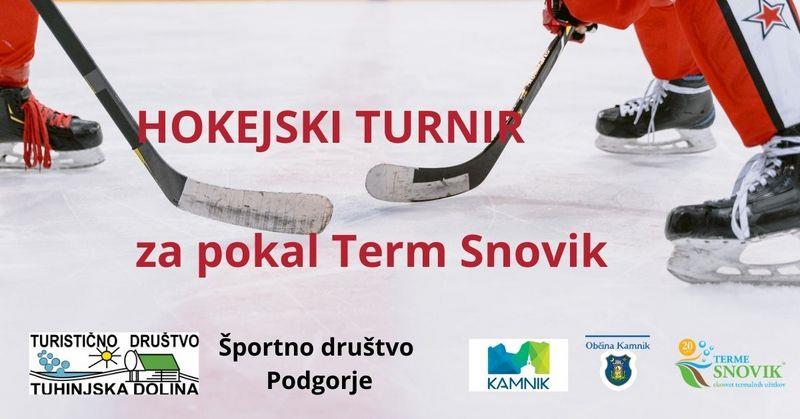 Turistično društvo Tuhinjska dolina v sodelovanju s Športnim društvom Podgorje ob zaključku drsalne sezone v Snoviku organizira HOKEJSKI TURNIR za pokal Term Snovik 2022. Turnir bo potekal v soboto, 5. 3. 2022, s pričetkom ob 15. uri na pokritem drsališču tik ob termah.