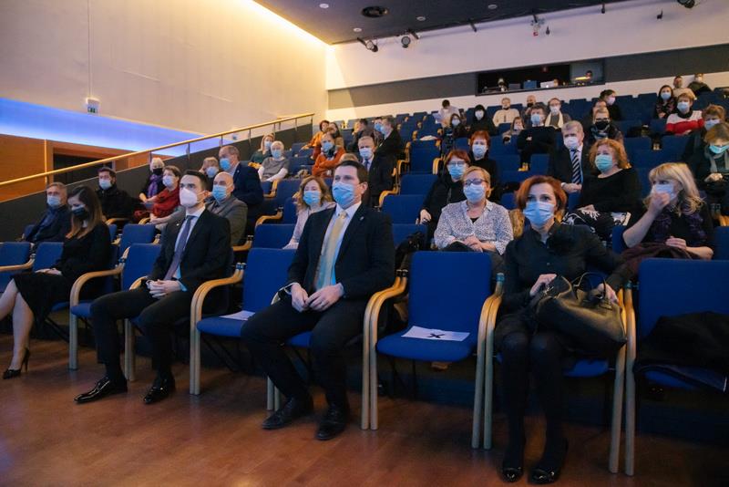 Slavnostna govornica, direktorica Javnega zavoda za kulturo Kamnik Irena Gajšek pa nam je namenila misli o prenovljenem Domu kulture Kamnik, o delovanju Javnega zavoda za kulturo Kamnik ter kulturnem dogajanju preteklega leta: »Prav lepo pozdravljeni na današnji proslavi, na predvečer največjega slovenskega kulturnega praznika, tukaj v novo obnovljenem največjem kulturnem hramu v Kamniku. V izjemno čast mi je, da dogodek danes lahko združimo z odprtjem obnovljenega Doma kulture v Kamniku. Sedanji Dom kulture Kamnik je bil zgrajen davnega leta 1953 kot del Kemične industrije Kamnik imenovane Barutana in je od tedaj služil različnim namenom. Zgradili so ga delavci sami, vrata pa so odprli tudi drugim. Tedaj so v domu potekale redne kino predstave, v zgornji mali dvorani pa se je ob petkih tudi plesalo. Pravo kulturno vsebino je pričel pridobivati leta 1996, ko ga je za dogodke pričelo uporabljati Kulturno društvo Priden možic ter Prvo slovensko pevsko društvo Lira Kamnik ter Mešani pevski zbor Odmev Kamnik. Leta 2002 se ga je Občina Kamnik odločila obsežno prenoviti in posvetiti kulturnemu življenju v Kamniku. V lanskem letu so se za Dom kulture Kamnik, poleg že znanih covid dogodkov, zgodili še trije večji, in sicer prvi večji je bil ta, da je bila Občina Kamnik, v letu 2021, uspešna na razpisu Ministrstva za infrastrukturo in tako v času od avgusta do decembra 2021 izvedla obsežno energetsko sanacijo objekta. V okviru sanacije so bila zamenjana okna in vrata na stavbi, izoliran je bil celoten objekt, vključno s podstrešjem, izdelana nova fasada in izvedena zamenjava razsvetljave. Na južnem delu strehe pa je bila izvedena sončna elektrarna. Skupaj s sanacijo in optimizacijo razsvetljave je Občina istočasno izvedla tudi namestitev novih lučnih in scenskih vlekov, ki jo je delno financiralo Ministrstvo za kulturo. Vrednost obeh investicij je znašala okoli 800.000 evrov, s tem pa je Dom kulture Kamnik postal najbolj zelen in energetsko varčen javni objekt v občini Kamnik. Naj se na tem mestu še enkrat zahvalim Občini Kamnik, županu Mateju Slaparju, celotni ekipi za družbene dejavnosti z vodjo Tino Trček in sodelavkama Liljano Juhart Mastikosa ter Uršulo Mihelčič Glavan. Posebno zahvalo ob tej priliki pa izrekam članu naše kulturne ekipe – tehničnemu koordinatorju, ki je ves čas sodeloval pri obnovi Primožu Jerasu. Tretji dogodek minulega leta pa sem namenila združitvi kulturne dejavnosti v Kamniku. S 1. julijem 2021 se je tako s preimenovanjem Javnega zavoda za kulturo Kamnik združilo troje enot v Kamniku, Mekinjski samostan z bogato kulturno-zgodovinsko tradicijo, Dom kulture Kamnik, v katerem danes dnevno ustvarja 10-15 društev, in del nekdanje smodnišnice – Barutana, z bogato industrijsko kulturno dediščino. Ekipo, ki je tako delovala v Domu kulture Kamnik in samostanu smo združili v eno in jo vsebinsko ter tehnično povezali. Danes ekipa združuje 6 zaposlenih, ki so po profesionalizmu popolnoma različni, od kulturnih delavcev, umetnostnih zgodovinarjev, tehničnega kadra do ekonomistov. Ravno ta različnost nas bogati in vzpodbuja narediti v Kamniku nekaj novega. Kamnik želimo narediti prepoznavno prestolnico kulture pod alpami.«