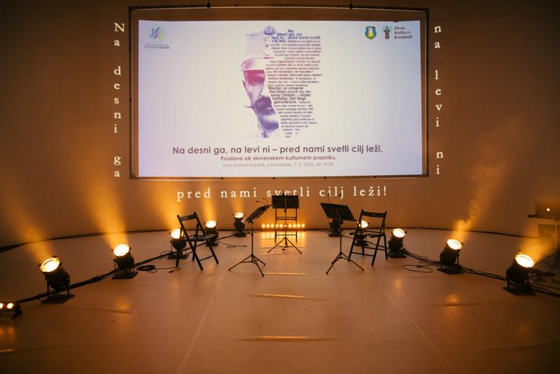 Včeraj, v ponedeljek, 7. februarja 2022, se je v Domu kulture Kamnik odvijala proslava ob Prešernovem dnevu, ki jo je pripravil Javni zavod za kulturo Kamnik v sodelovanju z Občino Kamnik, ob tej priložnosti pa smo v uporabo uradno predali celostno prenovljen Dom kulture Kamnik. Zbrane sta nagovorila župan Matej Slapar in direktorica Javnega zavoda za kulturo Kamnik Irena Gajšek, proslavo, ki smo jo poimenovali z Maistrovimi besedami »Na desni ga, na levi ni – pred nami svetli cilj leži«, pa si je ogledal tudi podpredsednnik Vlade, minister za obrambo Republike Slovenije mag. Matej Tonin skupaj s podžupanom Bogdanom Pogačarjem ter svetnicami in svetniki Občine Kamnik.