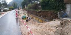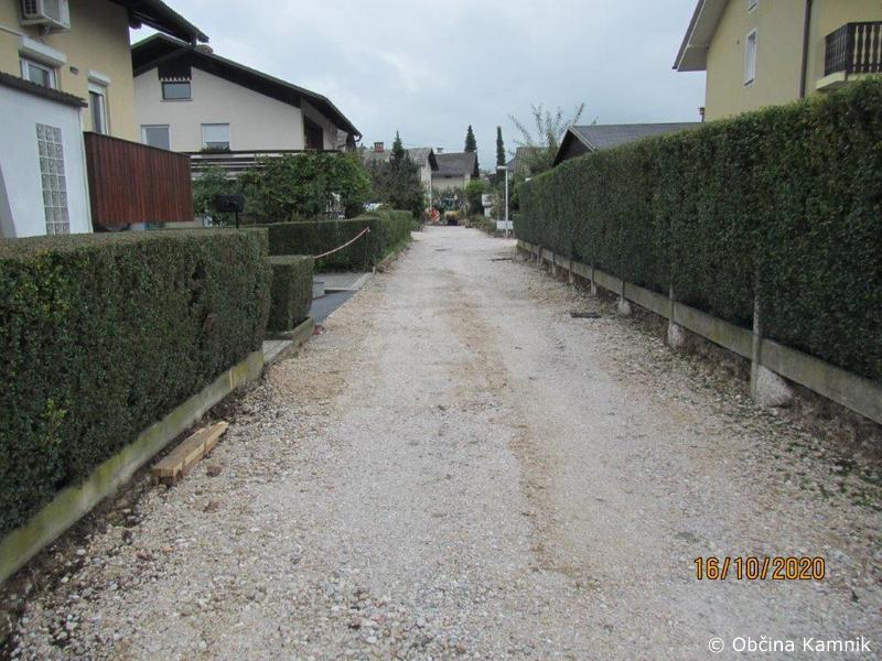 Izvajalec del opravlja dela v skladu s terminskim planom oziroma pogodbenimi določili. V preteklem tednu so se opravila naslednja dela, in sicer: izgradnja opornega zidu ob parcelni št. 421/6 v dolžini 32 metrov, gradnja kanalizacije, vodovoda, javne razsvetljave, TK kanalizacije vse od P4 do P10 ter temelj opornega zidu ob parcelni številki 417 v dolžini 40 metrov.