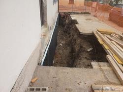 Izvajalec del je v pretekelem tednu v okviru del, ki se izvajajo na Policijski postaji Kamnik, izvedel odkop kletnega zidu do temelja, izravnaval zid ter uredil hidroizolacijo in oblogo s tako imenovanimi XPS ploščami.
