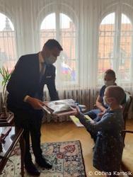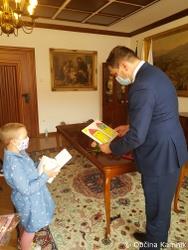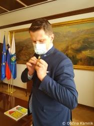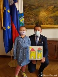 Med njimi je tudi prikupna in pogumna Kamničanka, 8-letna Mija, ki je danes županu ponosno predala zlato pentljico in sliko, ki jo je sama naslikala. Župan Matej Slapar se ji je za to iskreno zahvalil in poudaril, da so Junaki 3. nadstropja ter tudi drugi bolni otroci in mladostniki naši majhni junaki, ki jim moramo nameniti velik aplavz ter jim tudi s pripeto pentljo zaželeti, da bi premagali nepremagljive ovire in nikoli obupali ter ostali pogumni in močni tako, kot so pogumni tudi njihovi starši in skrbniki.