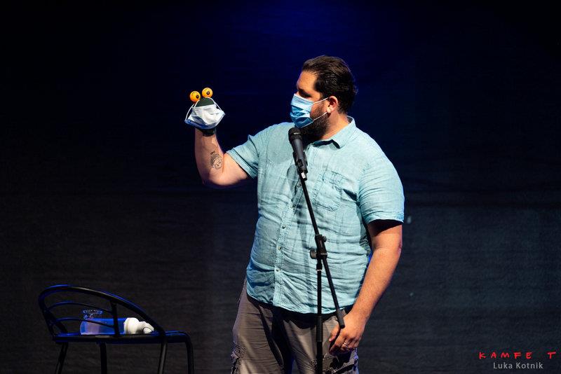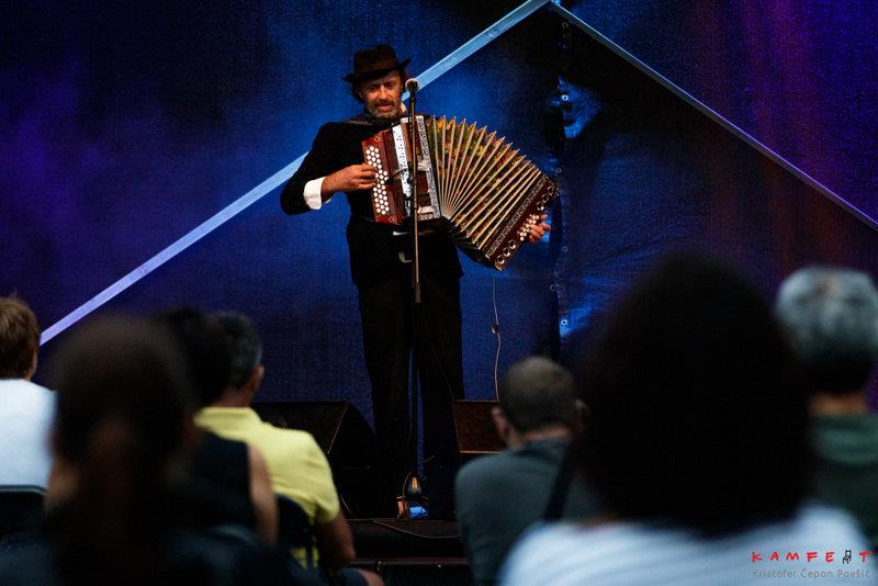 Janez Škof. Na Mestnem odru je karizmatično prepletal vrhunce slovenske poezije z netipičnim zvenom frajtonarice, kar je rezultiralo v še enem izvrstnem večeru.