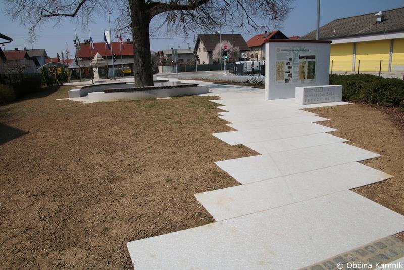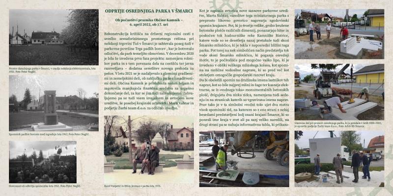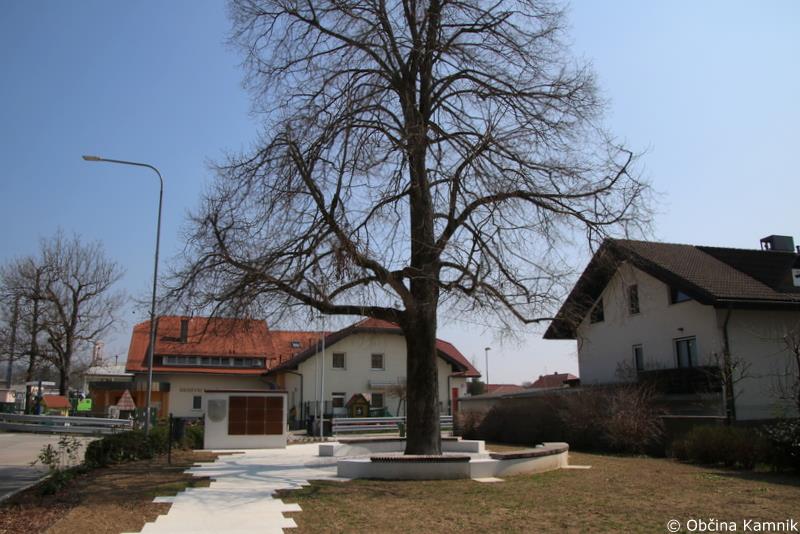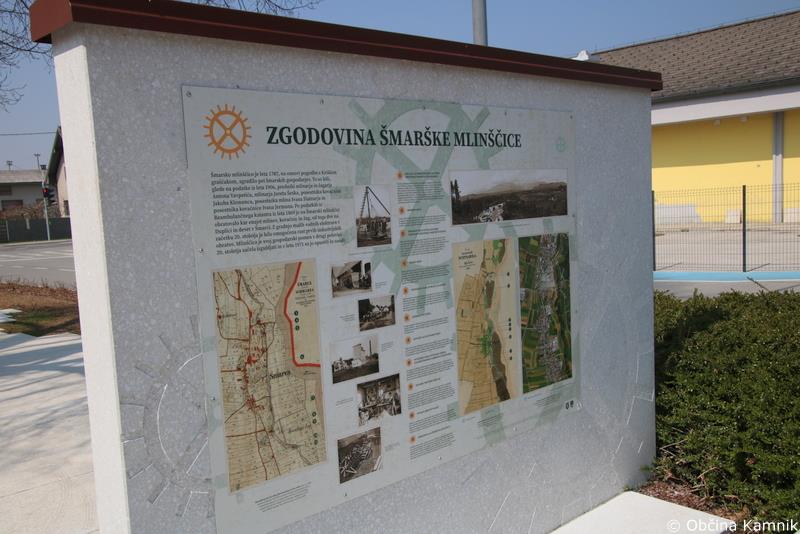 Občina Kamnik je lani v okviru ureditve osrednjega parka v Šmarci nadaljevala in celovito prenovila območje z novimi pohodnimi površinami, prostorom za počitek in novo ozelenitvijo. Okoli dominantne vaške lipe na novo razporejeni polkrožni betonski elementi s tlorisnim prikazom mlinskega kolesa, skupaj s pohodnimi ploščami v obliki toka mlinščice, na minimalističen način ponazarjajo zgodovinske vsebine, povezane tako z nastankom kot kasneje s samim gospodarskim razvojem kraja.