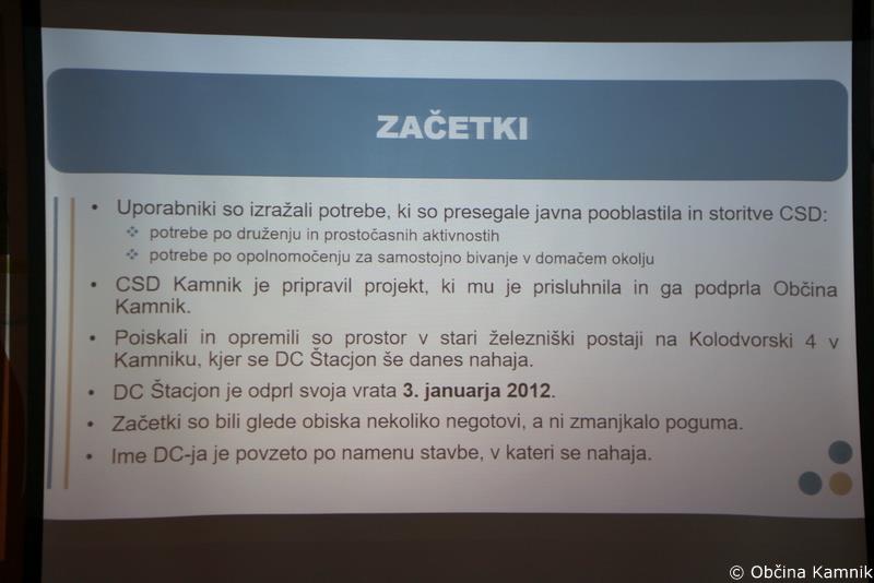Zakaj je pomembno delovanje dnevnega centra in na kakšen način deluje, pa je predstavila nova vodja Dnevnega centra Štacjon Vesna Žibert: »Dnevni center Štacjon je center, kjer so se prepletale mnoge zgodbe ljudi in stkale življenjske vezi. Vsak se je s svojo zgodbo vključil v dnevni center, nekateri so ga zapustili, a vsak je pustil svoj pečat. Skozi težave in preizkušnje dozorevamo in se veselimo svetlih in toplih dni, gradimo prijateljstvo in postajamo skupnost, v kateri se počutimo varne in sprejete. Vsako jutro telovadimo, delamo in čistimo. Lepe dneve izkoristimo za izlete in se učimo kuhati zdrave jedi, sodelujemo pri različnih delavnicah in si vzamemo čas za pogovor, kavo, praznovanja in druženje. Najbolj se veselimo večdnevnega letovanja v poletnih mesecih in smo ponosni na to, ko nas obiščejo pomembni gostje.«