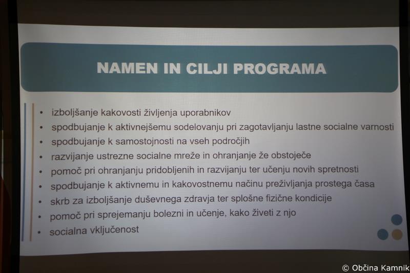 Predstavnik Ministrstva za delo, družino, socialne zadeve in enake možnosti Gregor Majcen je skupaj s Tejo Podgorolec predstavil izvajanje in razvoj socialno varstvenih programov. Koordinatorica obravnave v skupnosti Andreja Jerič in klinična psihologinja gospa Ivana Bulić sta predstavili delovanje Centra za duševno zdravje odraslih Zdravstveni dom Domžale. Vodja Pisarne za informiranje in svetovanja Ljubljana društva Ozara Tanja Velkov Garagić in Tatjana Cik sta povedali, kaj pomeni program za informiranje in svetovanje ter na kakšen način sodelujejo z Dnevnim centrom Štacjon. O možnostih vključitve v storitev obravnava v skupnosti pa je predstavitev pripravila strokovna delavka in koordinatorica obravnave v skupnosti na Centru za socialno delo Osrednja Slovenija Vzhod Tina Širnik.