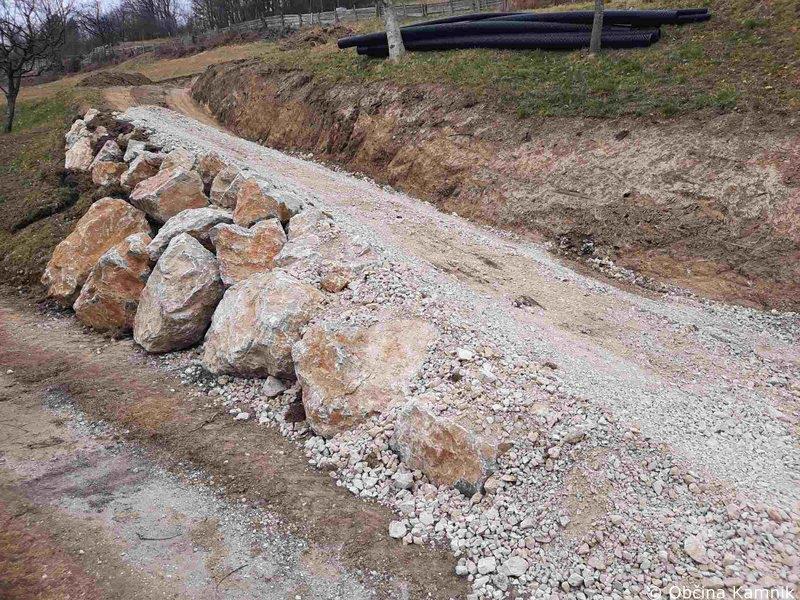 Na podlagi izvedenih geomehanskih raziskav in projekta PZI je izbrani izvajalec, Komunalno podjetje Kamnik, d. o. o., pričel s sanacijo zemeljskega plazu. Poleg oporne konstrukcije v dolžini 28 metrov, bosta zgrajeni še dve kamnito drenažni rebri v dolžini 15 metrov.
