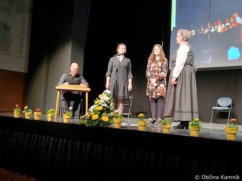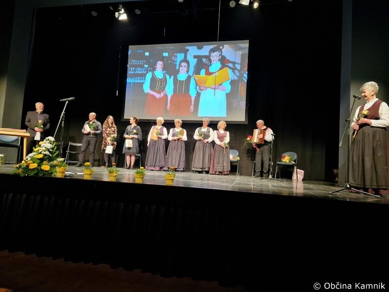 Vse zbrane v dvorani je v imenu Občine Kamnik pozdravila ter Ljudskim pevkam Predicam za njihov jubilej čestitala višja svetovalka za področje družbenih dejavnosti Liljana Mastikosa.