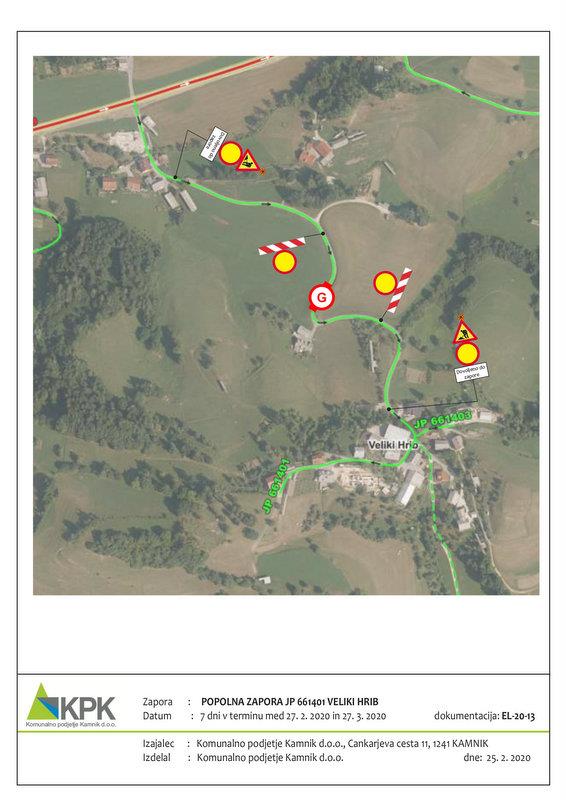 Obvestilo o spremembi prometnega režima na območju Velikega Hriba
