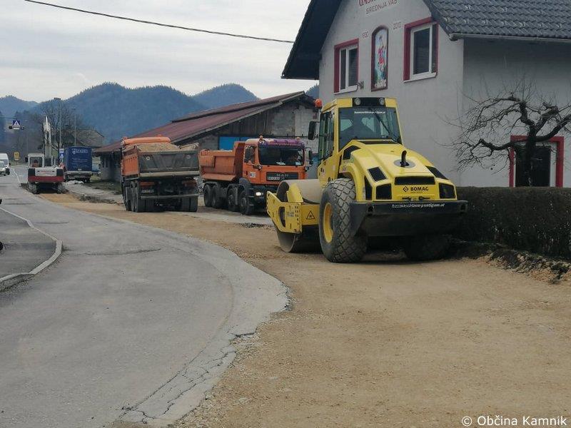 V preteklem tednu se je v naselju Srednja vas pri Kamniku nadaljevala obnova vozišča. V sklopu obnove se bo uredilo odvajanje padavinskih voda, izvedla se bo hitrostna ovira (grbina na novem prehodu za pešce), vgradila dodatna cesta signalizacija ter nekoliko prilagodil »S« ovinek. Dela potekajo pod polovično zaporo, zato vse voznice in voznike naprošamo, naj dosledno upoštevajo prometno signalizacijo.