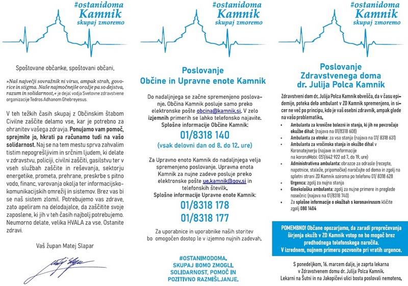 Občina Kamnik je pripravila letake, ki jih bodo v teh dneh po pošti prejela vsa gospodinjstva na območju občine.