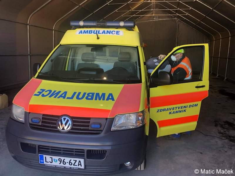 Razkuževanje reševalnih vozil Zdravstvenega doma dr. Julija Polca Kamnik