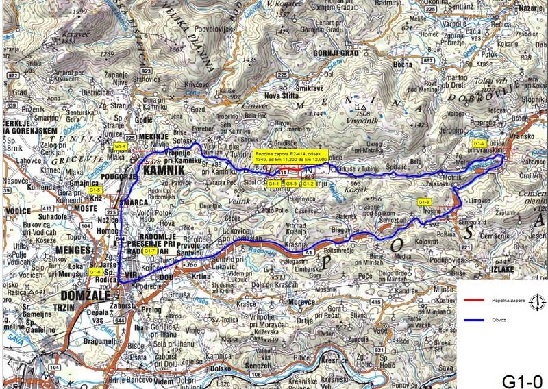Obvoz za vozila bo označen po trasi državnih cest Ločica – Trojane – Blagovica – Lukovica – Domžale – Kamnik in obratno.