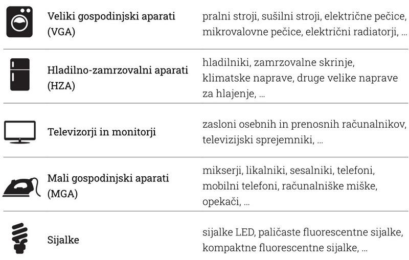 KAJ VSE ŠTEJEMO ZA ODPADNO ELEKTRIČNO IN ELEKTRONSKO OPREMO, KI JO LAHKO ODDATE V KOTIČEK ZA PONOVNO UPORABO?