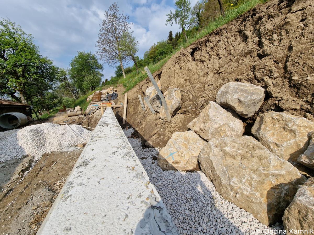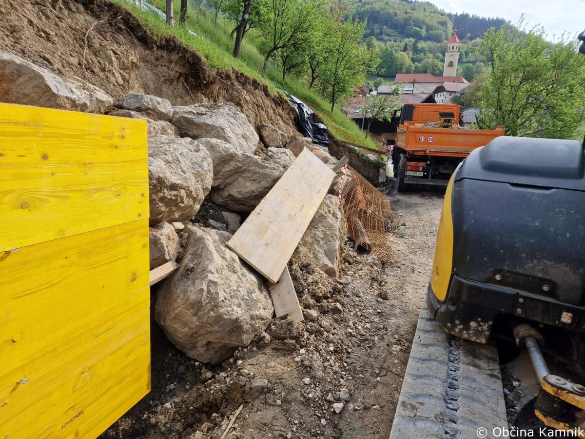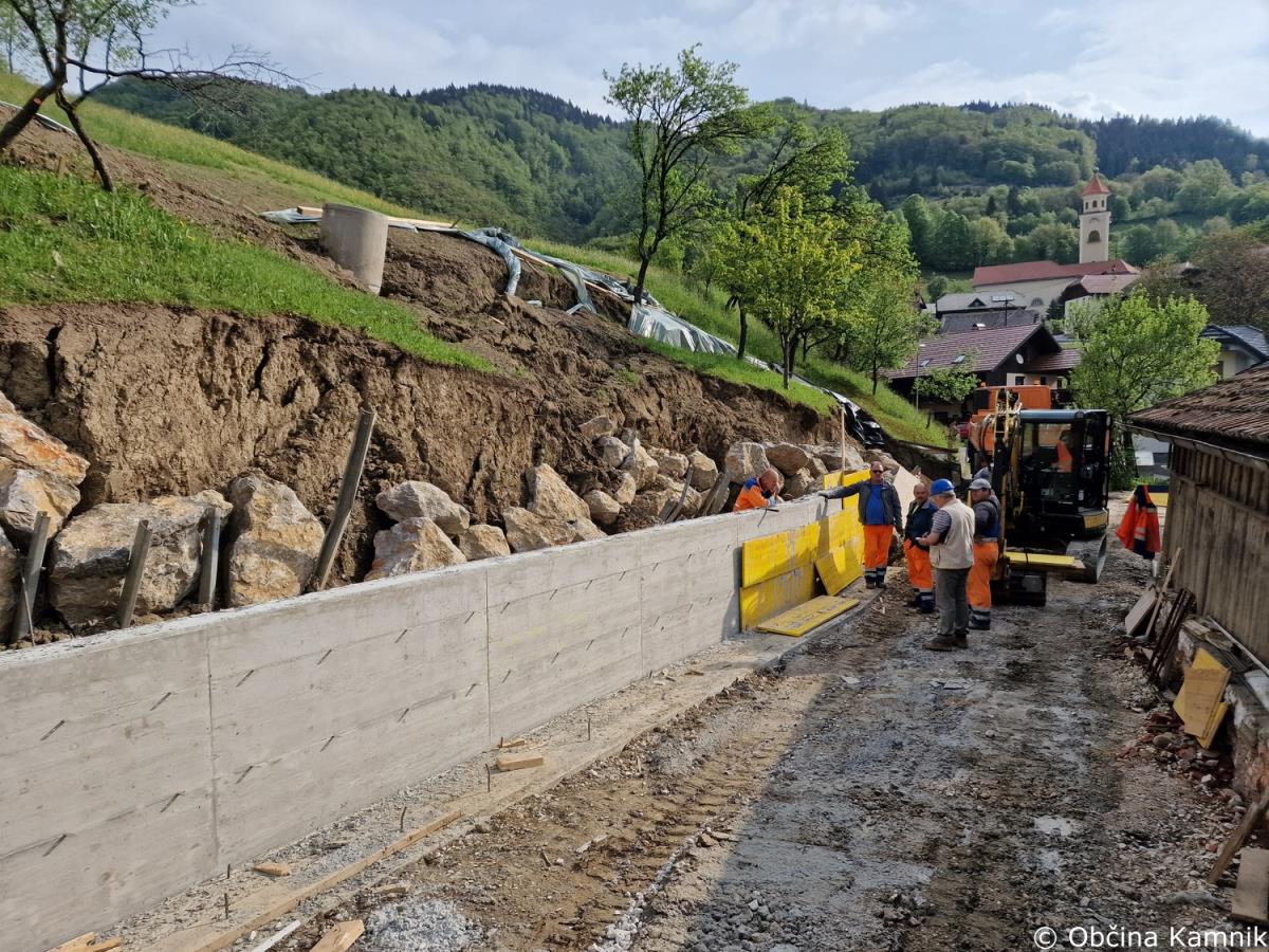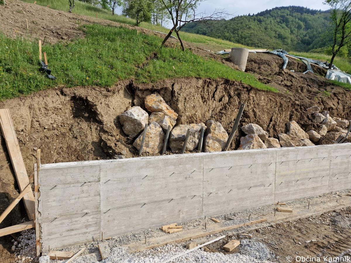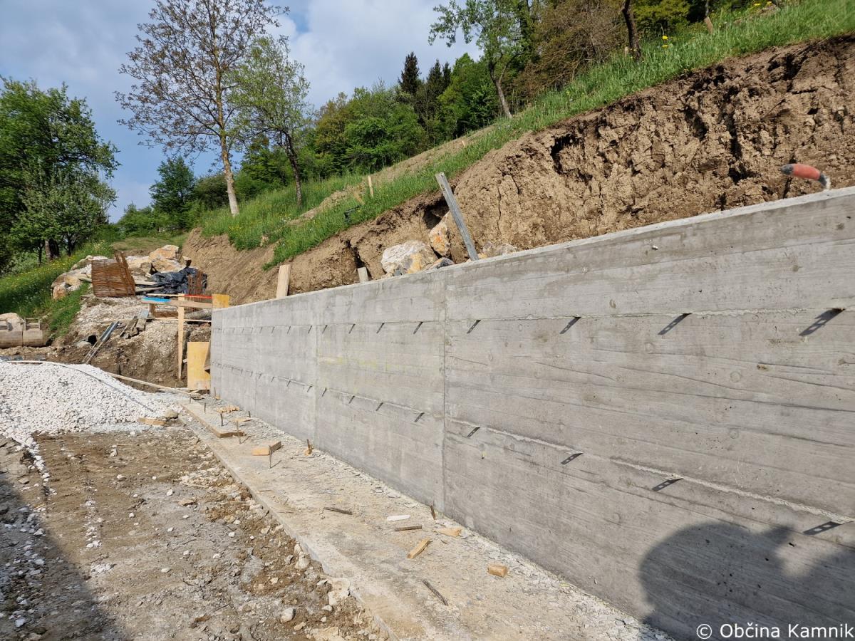 V preteklem tednu se je začela gradnja opornega zidu v dolžini 28 metrov. Pred tem sta bila uspešno izvedeni in zaključeni gradnji dveh kamnito drenažnih reber v dolžini 15 metrov ter pilotov. Sanacija zemeljskega plazu se izvaja nad občinsko cesto JP661381 v kraju Zgornji Tuhinj. Občina Kamnik bo na Ministrstvo za okolje in prostor podala vlogo za pridobitev sredstev za sofinanciranje omenjenega plazu. Dela bodo potekala predvidoma do konca meseca maja.