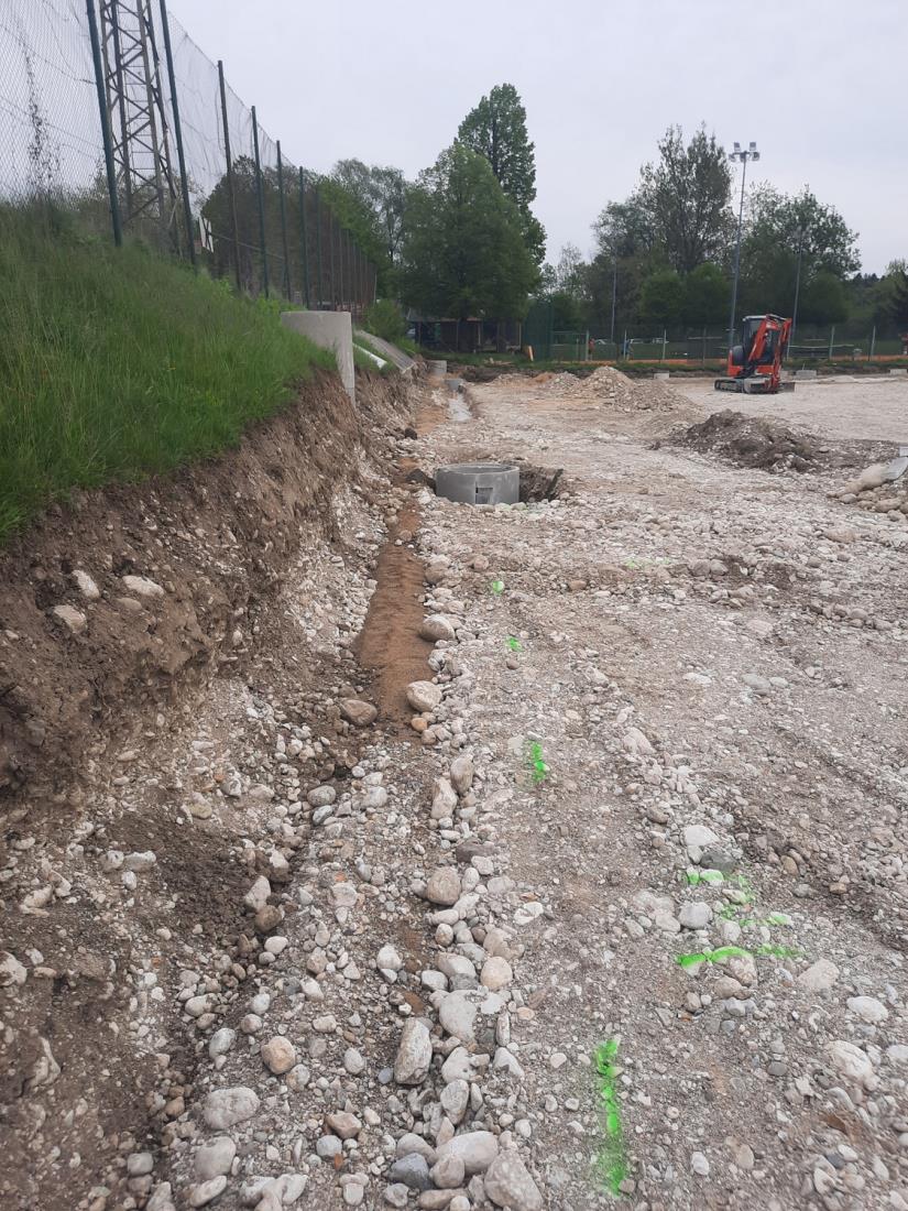 Nadaljujejo se dela I. faze prenove Športnega parka Virtus, in sicer je izvajalec del doslej izvedel odkop in odvoz humusa, utrdil podlago v ustreznem naklonu in na projektirani višinski koti izvedel vgradnjo 4 ponikovalnic ter na severni ter vzhodni strani igrišča vgradil 6 jaškov za potrebe izvedbe elektro kabelske kanalizacije in jih povezal z dvema zaščitnima cevema. Prav tako je na severni in vzhodni strani izvedel sistem vezne meteorne kanalizacije, katero bo v prihajajočem tednu dokončal še na zahodni ter južni strani igrišča, kjer bo sistem povezal na sistem 4 ponikovalnic.