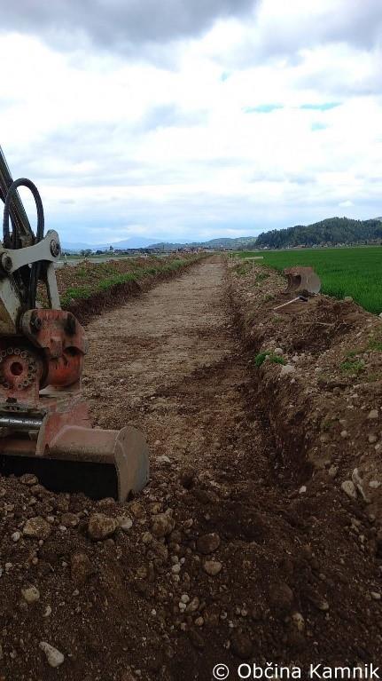 Dela na Kolesarski povezavi Kamnik–Godič se nadaljujejo v skladu s predvidenim terminskim načrtom. Nadaljujejo se dela na prepustih in vgrajevanje robnikov. Dela na treh prepustih so končana, na severnem delu trase pa humiziranje brežin.