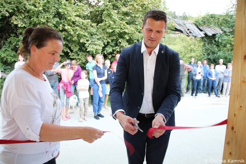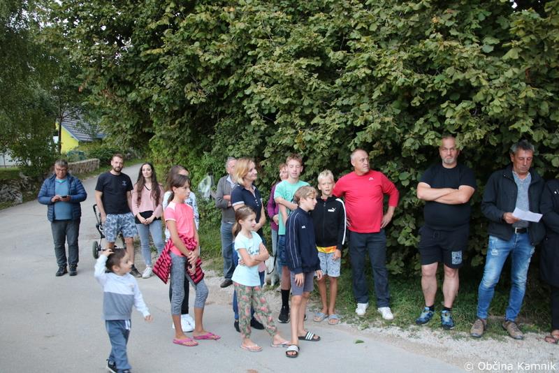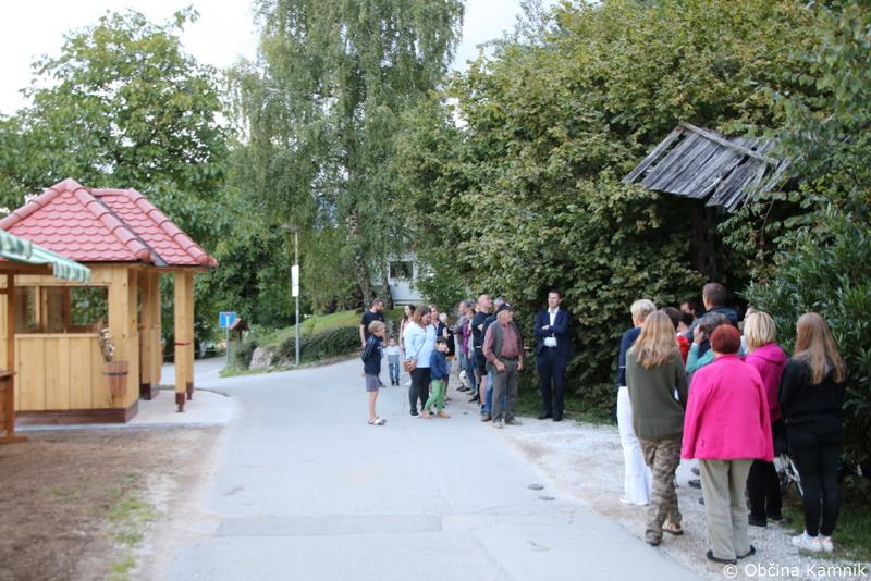 Na predvečer prvega šolskega dne so se na ovinku zbrali zadovoljni vaščani. V svojo sredino so povabili gospoda župana, ki se je rad odzval povabilu. Navzoči so bili deležni kratkega kulturnega programa z deklamacijo pesmi Brine Lužar, slavnostnim prerezom traku in brezjansko himno s harmoniko Marjana Raka.