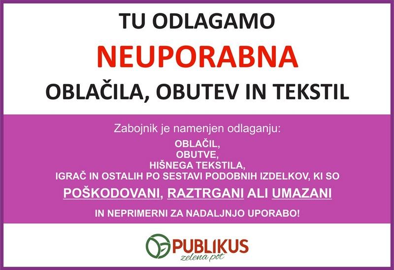 Na lokacijah pri Osnovni šoli Marije Vere in za mostom na Cankarjevi cesti 1, je po novem možno poleg uporabnih oblačil, obutve in tekstila oddati tudi neuporabna oblačila obutev in tekstil.