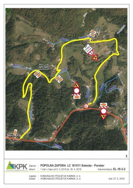 Sprememba prometnega režima lokalne ceste Soteska – Poreber in javne poti Poreber