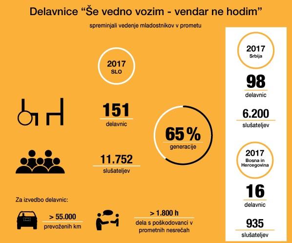 Mladi tako iz prve roke pridobijo informacije o pomenu prometne varnosti, vzrokih za nastanek prometnih nesreč in možnih hudih posledicah prometnih nesreč. Preventive prometne delavnice Še vedno vozim - vendar ne hodim učinkovito in dokazano vplivajo na spremembo stališč in vedenja mladih v prometu. Namen akcije pa je vplivati na izboljšanje prometne varnosti med mladimi z vplivanjem na stališča in odnos mladih do prometne varnosti ter vplivati na razbijanje stereotipa invalidnosti.