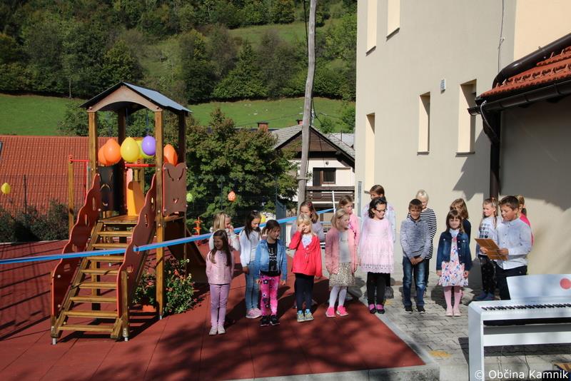 »Kot ste že slišali, je danes za nas poseben dan. Po obnovi podružnične šole leta 2019 smo sedaj pridobili še obnovljeno otroško igrišče ter panelno ograjo. Otroško igrišče je bilo postavljeno že leta 2010, vendar smo ob uporabi ugotovili, da peščena podlaga ni najbolj optimalna. Zato smo izrazili željo, da se pesek nadomesti z varnostnimi gumijastimi ploščami, ki zagotavljajo boljše pogoje in varno igro na igrišču. Prisluhnili smo tudi željam krajanov Tuhinja, da bi se ob menjavi podlage otroško igrišče nekoliko povečalo ter dopolnilo še z igrali za predšolske otroke.Občina Kamnik je prisluhnila našim željam in predlog potrdila ter skupaj s Krajevno skupnostjo Tuhinj začela s sanacijo. Hkrati z deli na otroškem igrišču je potekala tudi zamenjava celotne ograje na obeh igriščih. Učenci in krajani so z ureditvijo igrišča pridobili idealne pogoje za varno igro, športne ter druge dejavnosti, ki podpirajo in spodbujajo zdrav način življenja, gibanje na prostem ter druženje. Nova varovalna gumijasta podlaga pa omogoča tudi izvedbo pouka na prostem, kar je v skladu s sodobnimi smernicami poučevanja, in različne metode in inovativne pristope vzgojno izobraževalnega dela. Zato se ob tej priložnosti v imenu učencev in učiteljev iskreno zahvaljujem prav vsem, ki ste kakorkoli pripomogli k novi pridobitvi.«Zahvali za opravljeno delo in novo pridobitev Podružnične šole Zgornji Tuhinj se je pridružila tudi