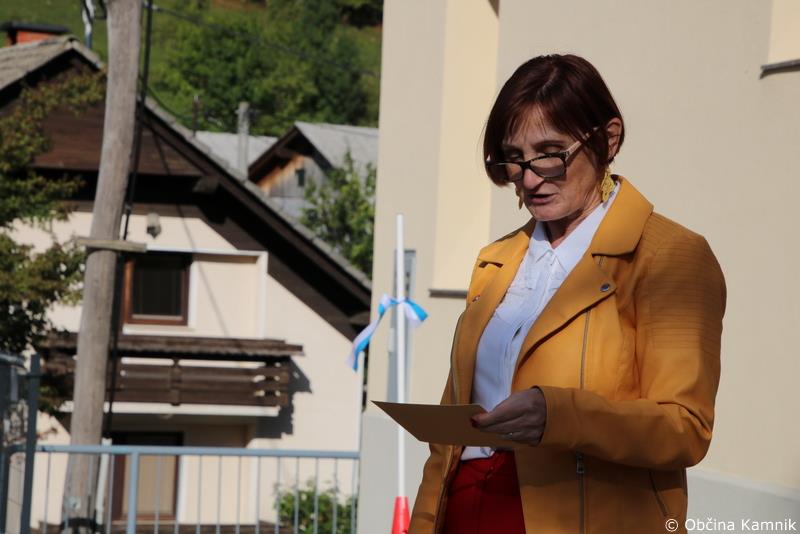 vodja Podružnične šole Zgornji Tuhinj Ivanka Bajde, ki ni skrivala navdušenja nad tem, da se bodo otroci sedaj varno igrali na zunanjih površinah.