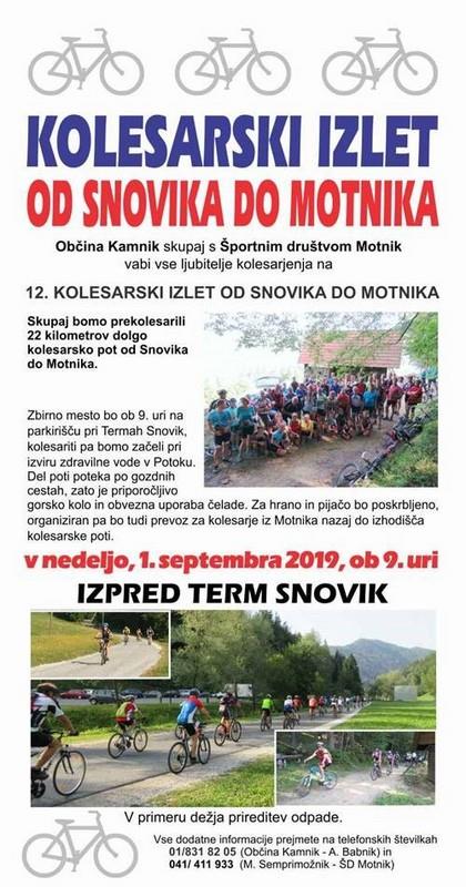 Kolesarski izlet od Snovika do Motnika 2019