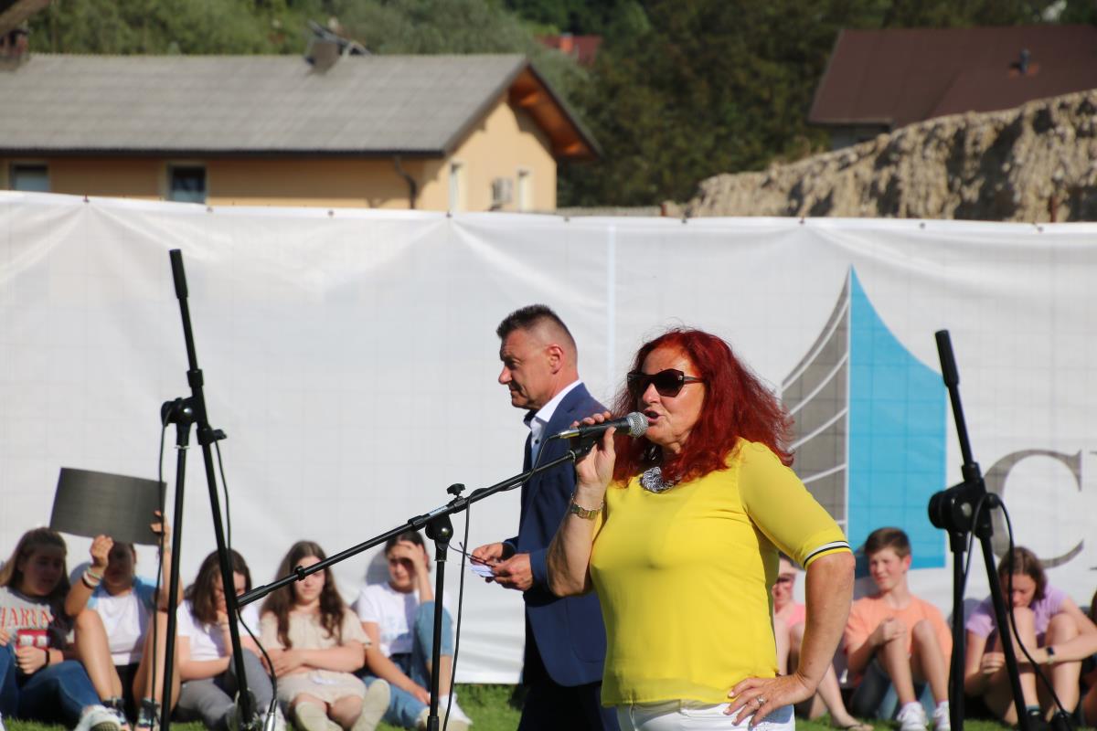 Tudi vodja skupine za pripravo prireditve gospa Tadeja Kilar je zbranim namenila nekaj besed: »Lepo pozdravljeni tudi v imenu delovne skupine za pripravo osrednješolske prireditve. Naša skupina je z načrtovanjem in delom začela že v času, ko še nismo vedeli, ali bomo prireditev sploh lahko izvedli in če, v kakšnem obsegu. Takrat smo si dejali, razmišljajmo in načrtujmo, kot da bo vse po starem. In prav smo imeli. Naslov letošnje prireditve smo določili že v začetku šolskega leta, ko smo načrtovali Eko dan. Idejo smo dobili v pesmi z naslovom Rad imej živali in cvetlice, ki jo bomo danes še slišali. Zakaj Rad imej? Naša ljubezen do živali in rastlin se odraža tudi v ljubezni do ljudi in sveta. Če imamo radi sebe, ljudi okoli nas, naš planet, se nam bo to zagotovo povrnilo. Danes smo vas na vhodu presenetili z vstopnico, na katero je prilepljeno sončnično seme. Posejte ga in si s to čudovito rastlino polepšajte poletne in jesenske dneve. Uživajte na prireditvi, nato pa si na sejmu izberite kakšnega izmed mnogih prekrasnih izdelkov naših učencev. In imejte se radi! Srečno!«