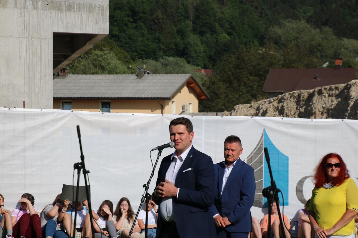 Župan Matej Slapar pa je udeleženem na dogodku dejal: »Pozdravljeni v imenu Občine Kamnik. Tudi sam sem se pred desetimi leti udeležil podobne prireditve Osnovne šole Frana Albrehta. Takrat se mi je, kot predsedniku Krajevne skupnosti Mekinje, ravnatelj zahvalil za podporo pri obnovi podružnične šole Mekinje. Danes pa že stojimo pred gradbiščem nove osnovne šole, za katero si je ravnatelj Rafko Lah prizadeval od leta 2005. Ponosen sem da boste v naslednjem šolskem letu že lahko sedli v klopi nove šole, ki bo omogočala vrhunske pogoje za šolanje. Zahvaljujem se vam za potrpljenje tekom gradnje in vam želim uspešen zaključek šolskega leta.«
