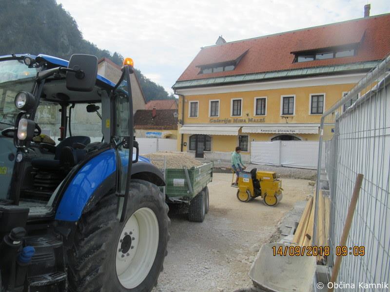 Gradnja na Glavnem trgu se nadaljuje in poteka po predvidenem terminskem planu. Izvajalec Komunalno podjetje Kamnik, d. d. izvaja zasip območja, kjer so se izvajala arheološka izkopavanja in raziskave.