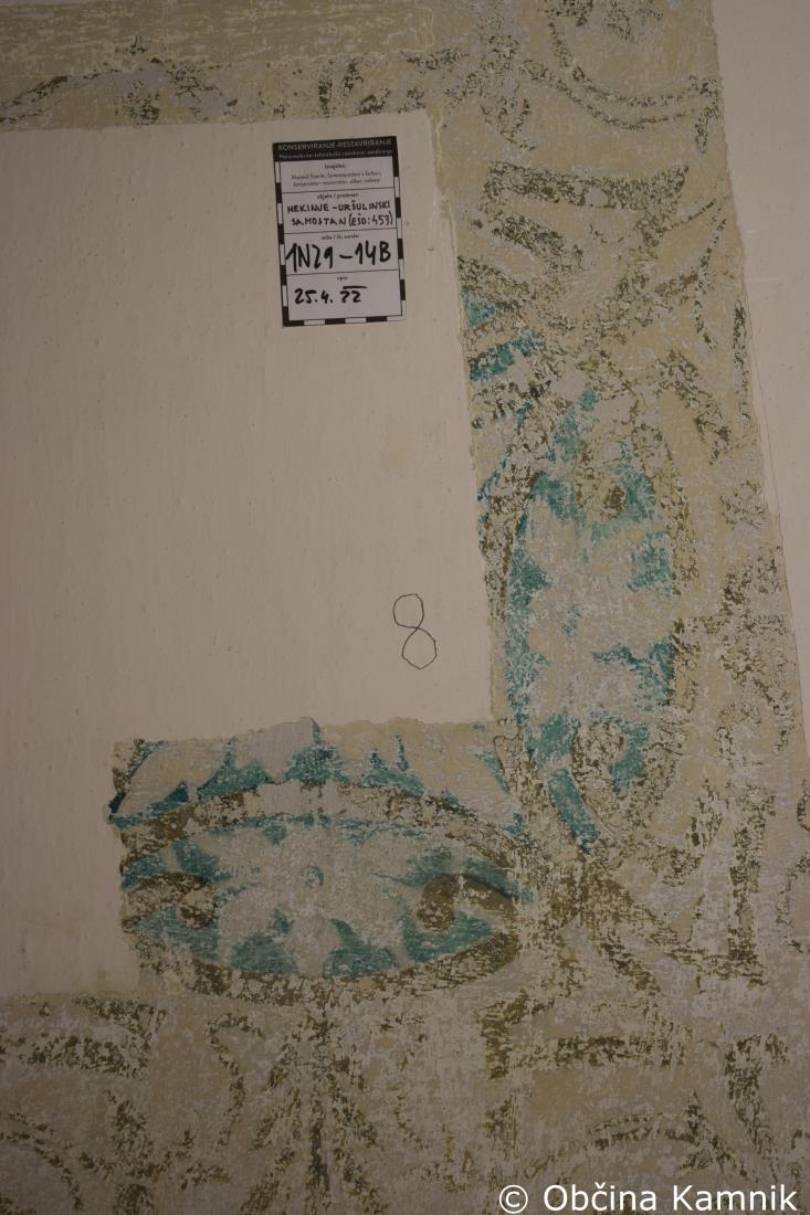 Sondažne raziskave v Mekinjskem samostanu se nadaljujejo. V mesecu aprilu in maju so nam postregle z novimi rezultati. Pod več plastmi beležev so bile odkrite dekorativne poslikave v kapeli, zakristiji in t.i. zimskem koru. Gre za stenske poslikave izvedene v tako imenovani secco tehniki, ki se v kapeli nahajajo na predelu cokla, v zakristiji pa tudi višje na steni in obokanem stropu. Podobno zasnovo imajo tudi poslikave na stenah na koru, kjer se dekorativne poslikave nahajajo v več plasteh, sredino ravnega stropa pa krasi rozeta večje dimenzije.