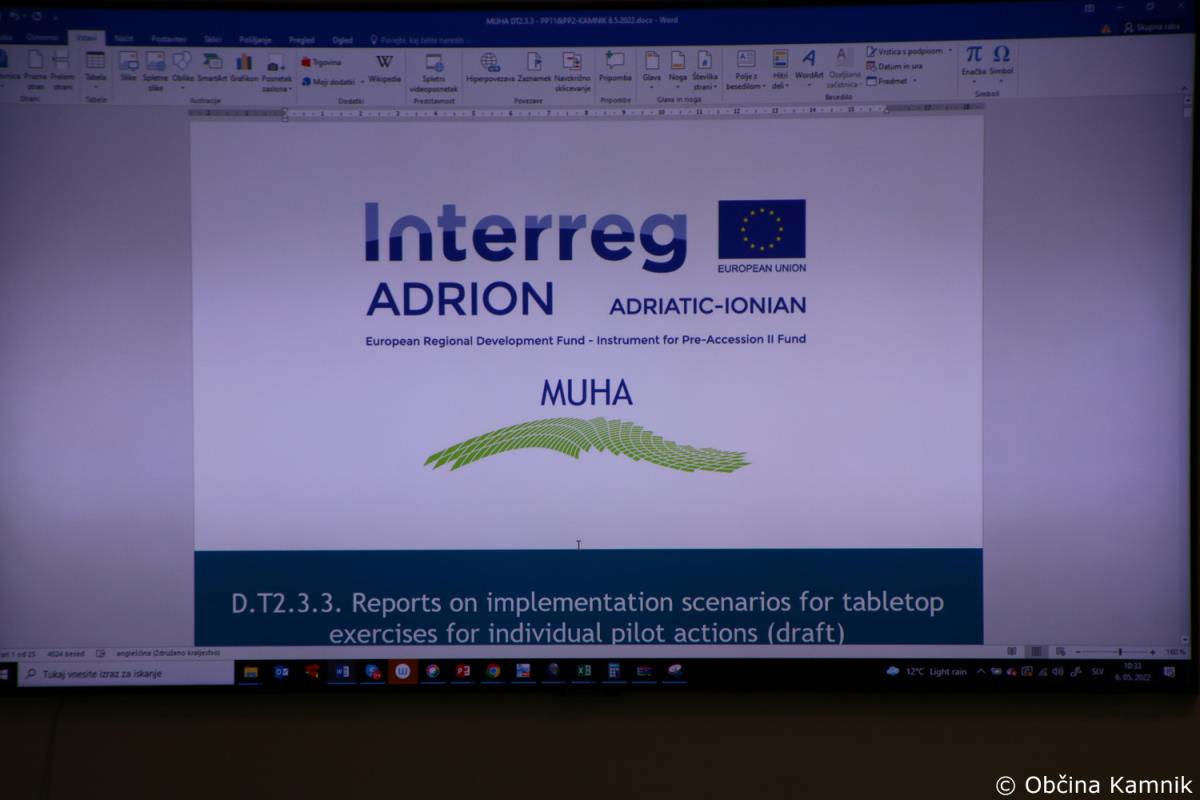 Pred dnevi je bila v okviru projekta MUHA organizirana teoretična štabna vaja na temo poplav, s poudarkom na verižnih nesrečah, ki bi se lahko v primeru katastrofalnih poplav pripetile v naši občini pri oskrbi prebivalstva s pitno vodo. Vajo je pripravila in izvedla občinska ekipa projekta MUHA v sodelovanju s projektnim partnerjem Univerzo v Ljubljani (konkretno Naravoslovnotehniško fakulteto in Fakulteto za gradbeništvo in geodezijo) in predstavniki Komunalnega podjetja Kamnik, d. o. o..