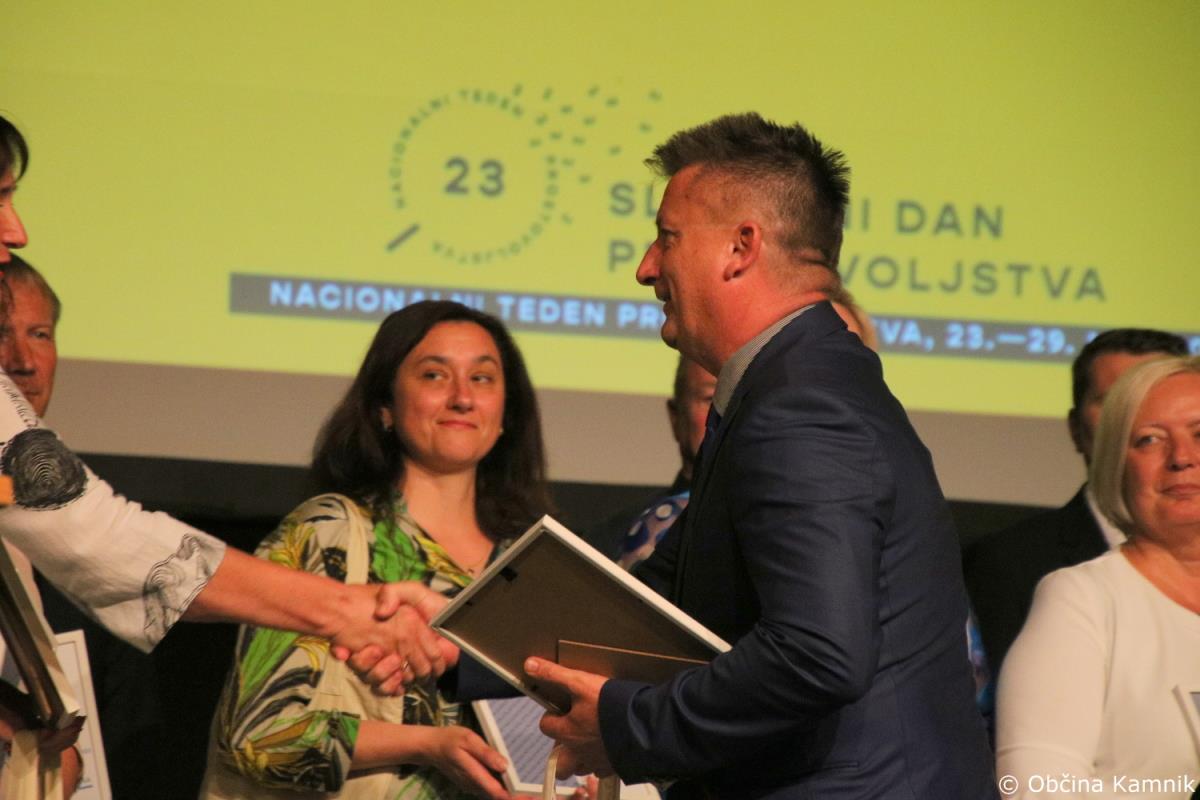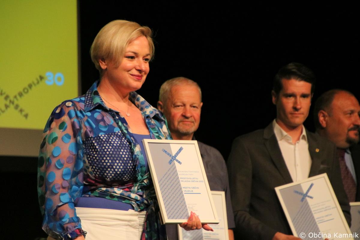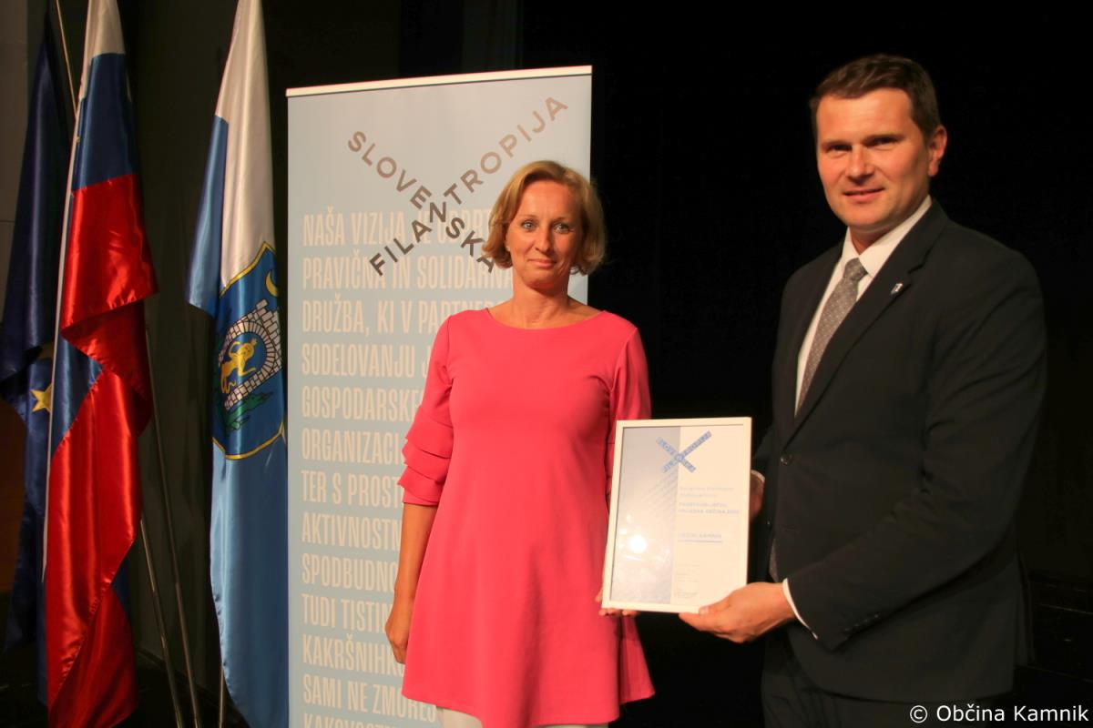 Občina Kamnik je skupaj še z ostalimi 35 slovenskimi občinami s strani Slovenske filantropije ponovno prejela naziv Prostovoljstvu prijazna občina, sedem občin pa je na novo prejelo ta častni naziv. Priznanje je v imenu Občine Kamnik v Domu kulture Kamnik prevzel župan Matej Slapar skupaj z višjo svetovalko za področje družbenih dejavnosti Katjo Vegel. V naši lokalni skupnosti imamo preko 100 organizacij, ki izvajajo prostovoljske dejavnosti, za kar smo jim na Občini Kamnik hvaležni in jim iskreno čestitamo, saj je prejeto priznanje predvsem priznanje njim. Priznanje, da s predanim delom v prostem času dvigajo kvaliteto življenja mnogim in so vidni ne le v lokalni skupnosti, temveč tudi na nacionalnem nivoju. Veseli smo, da so se organizatorji Slovenska filantropija odločili, da letošnji Slovesen dan prostovoljstva organizirajo v naši občini, s tem pa smo potrdili, da imamo v Kamniku veliko mrežno srčnih in predanih ljudi, ki jim prostovoljstvo predstavlja način življenja.