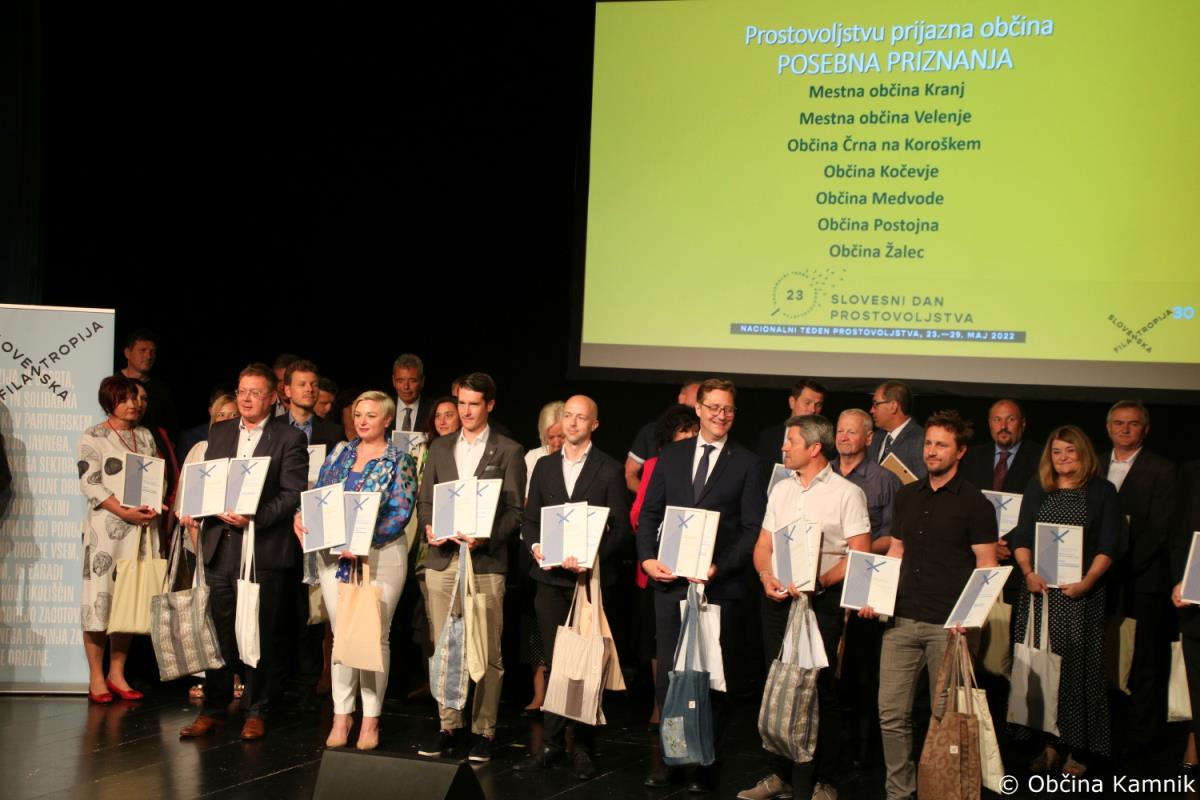 Na Slovenski filantropiji, Združenju za promocijo prostovoljstva, si prizadevajo za dvig prepoznavnosti prostovoljskega dela in že 23. leto zapored praznujejo Nacionalni teden prostovoljstva. V okviru tega vsako leto podeljujejo tudi naziv Prostovoljstvu prijazna občina. Prostovoljci so močno vezivo naših lokalnih skupnosti. Za sistematično spodbujanje prostovoljstva in zagotavljanje podpore delovanju prostovoljskih organizacij, soustvarjanje pozitivne družbene vrednosti prostovoljstva v lokalni skupnosti in promocijo prostovoljstva z lastnim zgledom vodstev občin je Slovenska filantropija na današnji Slovesni dan prostovoljstva, 24. maja 2022, naziv Prostovoljstvu prijazna občina ponovno potrdila 34 slovenskim občinam, med njimi tudi Občini Kamnik. Za aktivno spodbujanje prostovoljstva občanov in podporo delovanju prostovoljcev in prostovoljskih organizacij pa je naziv Prostovoljstvu prijazna občina prvič pridobilo 7 občin. Komisija pa se je letos po prebiranju prijav in spremljanju dela občin prvič od leta 2014, ko se naziv podeljuje, odločila, da podeli še posebna priznanja 7 občinam za večletno spodbujanje prostovoljstva, neomajno podporo delovanju prostovoljskih organizacij in izjemen posluh za pomen solidarnosti v skupnosti.