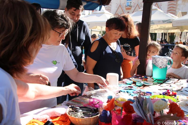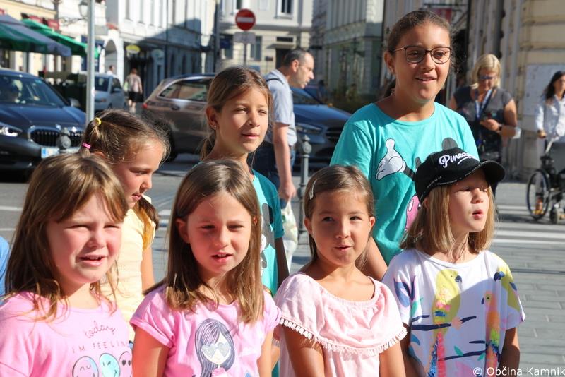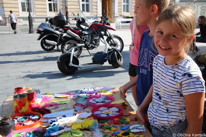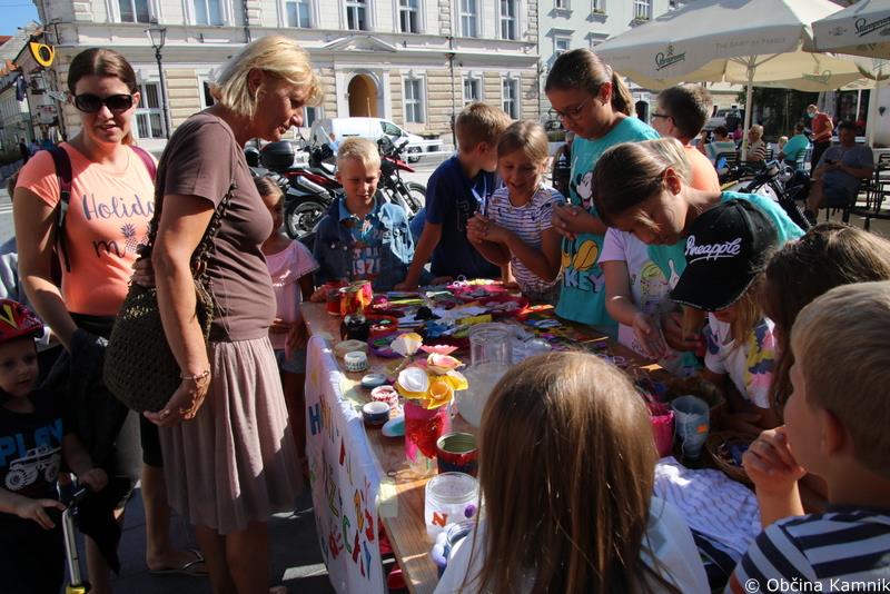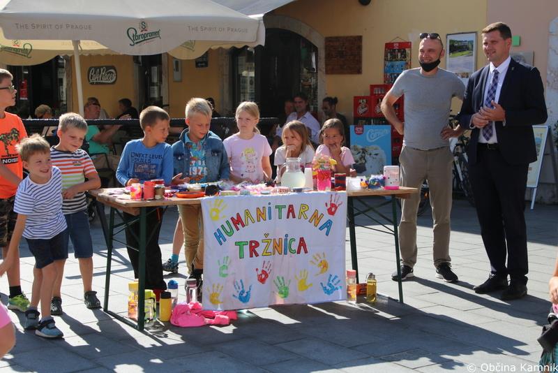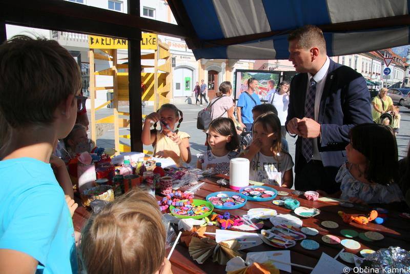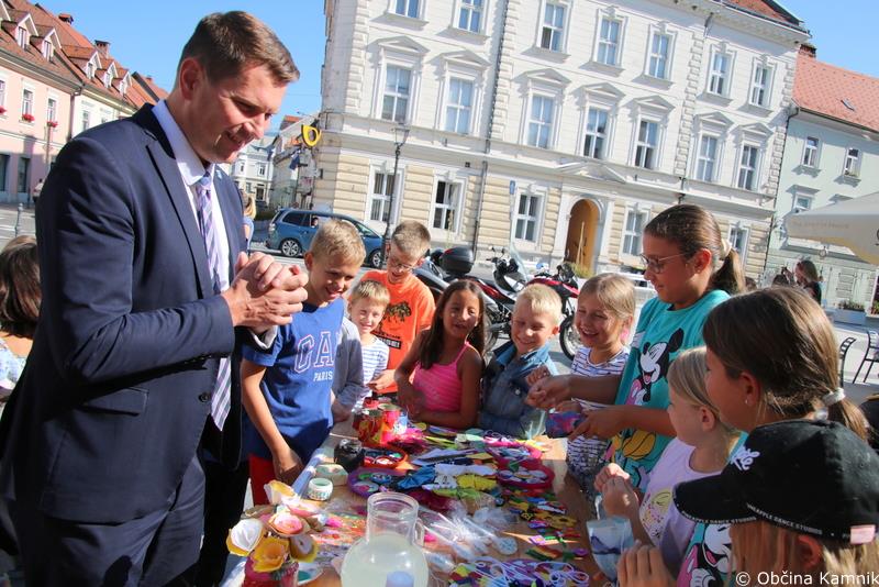 Župan Matej Slapar je danes, v petek, 20. avgusta 2021, na Glavnem trguobiskal otroke Društva počitniško varstvo Kamnik, kjer se je odvijala njihova Mala tržnica počitniškega varstva.