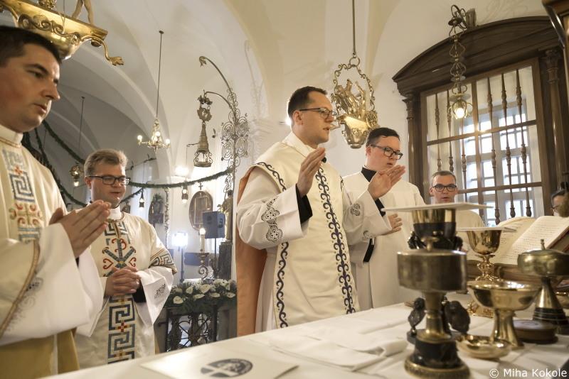 Boštjan Dolinšek se je ob včerajšnjem slovesnem trenutku zahvalil vsem, ki ga na poti spremljajo, predvsem pa svojima staršema, Barbari in Davidu ter slednjim izrožil blagoslovljene rožne vence.Zahvalil pa se je še številnim prijateljem, duhovnikom in faranom: »Hvala vsem sošolcem, učiteljem, profesorjem in vzgojiteljem tako v osnovni šoli kot v srednji šoli in na fakulteti. Predvsem pa tu s hvaležnostjo zrem v oči številnim prijateljem. Vsak od vas točno ve, zakaj vse sem mu hvaležen. Vsega vam ne morem povrniti, tudi, če bi to želel. Gospod pa lahko. Zaupajte mu in prepričan sem, da bomo nekoč skupaj uživali življenje v njegovi družbi. Gospod zahvaljujem se ti za vse duhovnike, ki so bili in so še vedno opora pri moji osebni rasti. Hvala vsem nekdanjim župnikom. Tako tistim, ki sem vas osebno doživel, bodisi kot otrok, prvoobhajanec, birmanec, hvala gospodu Selanu in gospodu Berčanu, pa tudi vsem župnikom in duhovnikom, ki ste v Stranjah delovali pred tem. Vsak je gotovo storil nekaj, da je njiva naše župnije postala rodovitna za nov duhovni poklic. Hvala tudi nekdanjemu župniku Tonetu, ki me je kot duhovnik spremljal zadnjih 12 let življenja. Gospod ti edini vidiš v človeško srce, povrni mu kakor in kolikor ti sam veš. Hvala vsem dekanijskim duhovnikom ter vsem, ki ste v teh zadnjih letih prihajali maševat v Stranje in sem vas tako spoznal in v vas gledal tiste, ki hodite pred menoj in mi kažete, kje je zdaj tudi moje mesto. Prisrčna hvala vzgojiteljem Semenišča v Ljubljani, najprej vodstvu, da ste me utrdili na moji poti, in seveda vsem sedanjim vzgojiteljem, ki ste me sprejeli, ko sem se letos vrnil v Slovenijo kot diakon. Ob tem pa seveda prav posebna zahvala kolegu Germanik v Rimu, kjer sem smel preživeti čudovita tri leta moje formacije in kamor se vračam. Hvala dobremu Bogu za srečanja in doživetja, ki si mi jih naklonil in hvala gospodu nadškofu za njegovo zaupanje. Ob tem hvala tudi tebi Gabrijel, najprej za to, da si sprejel vlogo pridigarja na moji novi maši ter, kar je zame pravzaprav še bolj pomembno, hvala za prijateljstvo, podporo in zgled gorečega duhovnika. V vrsti duhovnikov pa si prav posebno zahvalo zasluži moj mentor v mojem letošnjem diakonskem letu, gospod župnik Francu Špur. Hvala patrom frančiškanom iz Kamnika, ker me vedno lepo sprejmete in kamor sem vedno rad prihajal. Zahvala se obrača tudi k sestri Štefki Klemen, ki mi je neštetokrat obljubila svojo podporo in molitveno bližino. Nešteto vas, ki z molitvijo in besedo hodite to pot z menoj,« je med drugim dejal Boštjan Dolinšek.