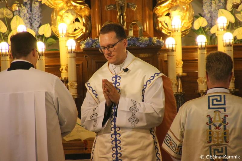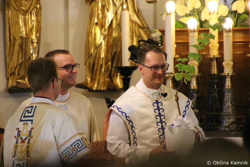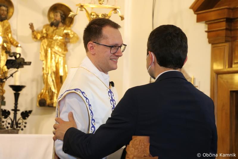 Ravno tako je novomašniku čestital župan Matej Slapar, ki mu je izročil darilo, ki ga bo spominjalo na rojstno občino, kamniško majoliko in Kamniško knjigo. Hkrati pa je izrazil čestitke za pogum, da se je odločil za duhovniški poklic in dejal, da smo Kamničanke in Kamničani ponosni, da je eden izmed letošnjih novomašnikov tudi iz naše občine.