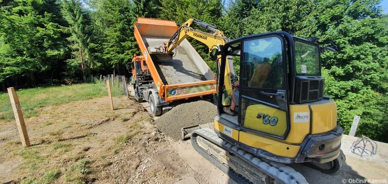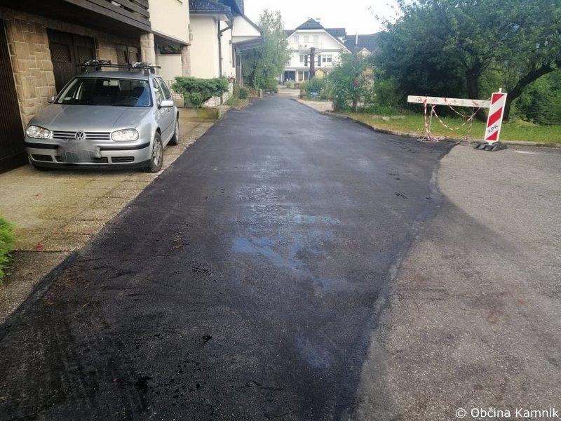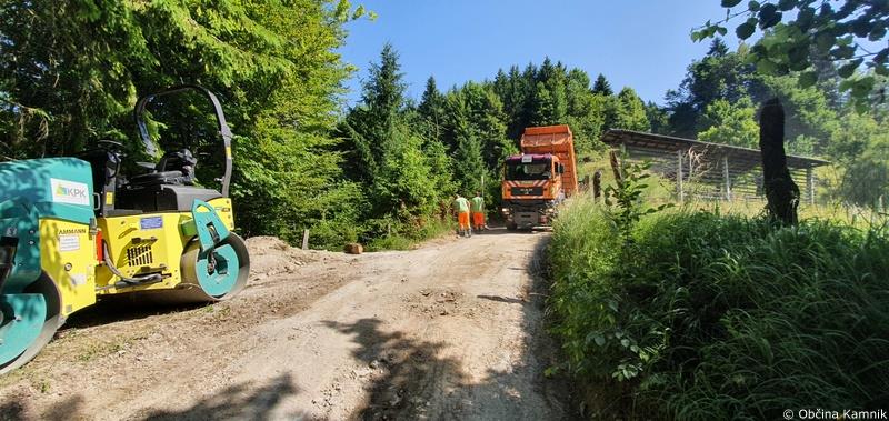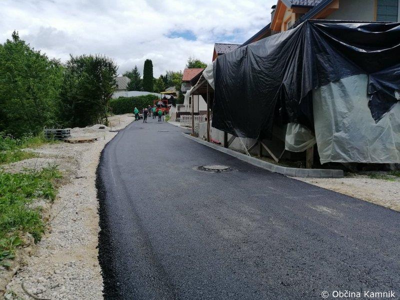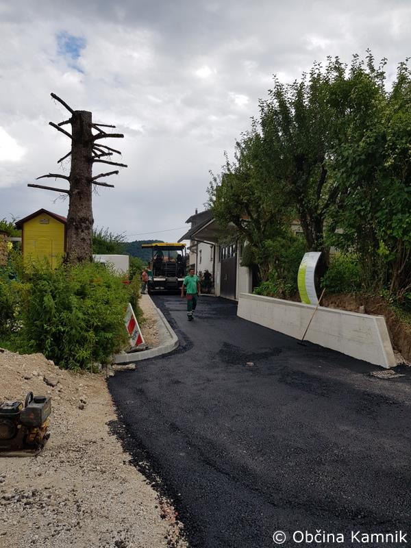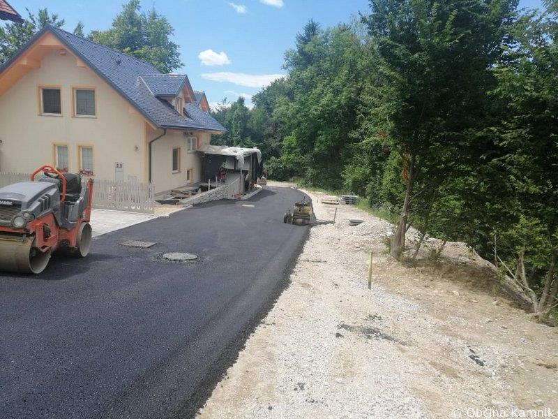 Izvajalec del je v preteklem tednu dokončal pripravo ceste za asfaltiranje in asfaltiral odsek v dolžini 220 metrov. V tem tednu se bo nadaljevalo urejanje bankin ter postavitev cestne signalizacije, pripravila pa se bo tudi vsa potrebna dokumentacij za priklop črpališča na električno omrežje.